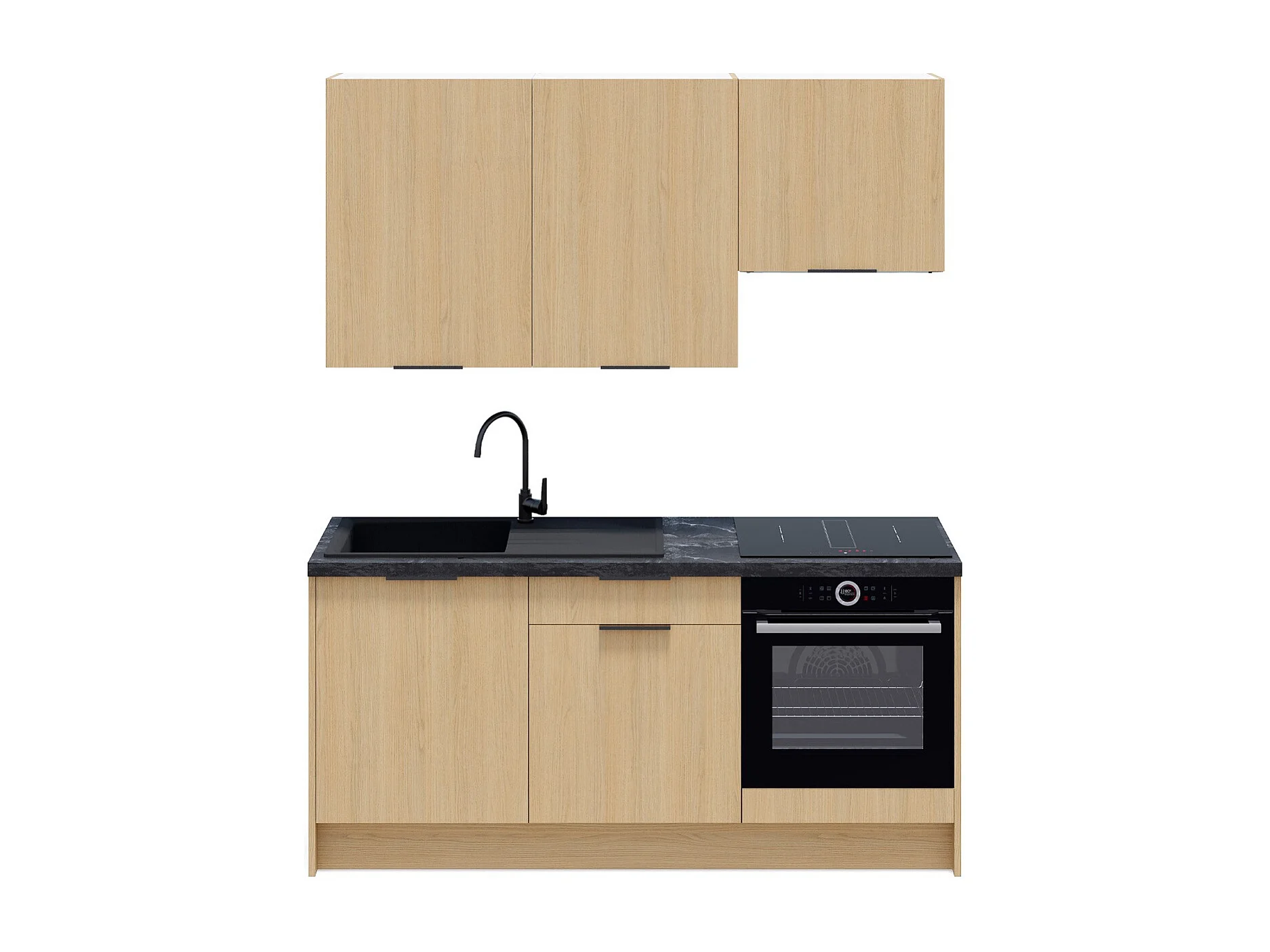 Ensemble de 6 meubles de cuisine - L. 185 cm - chêne clair - Sierra