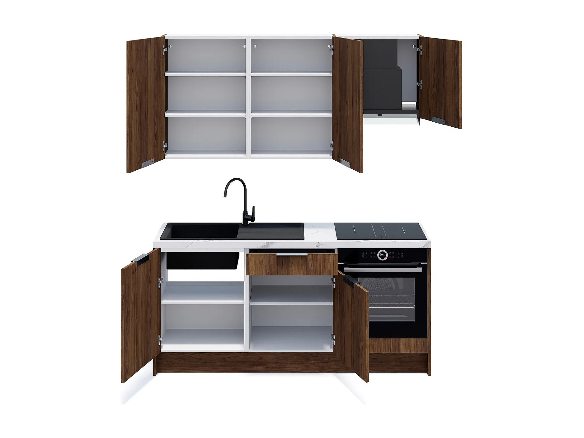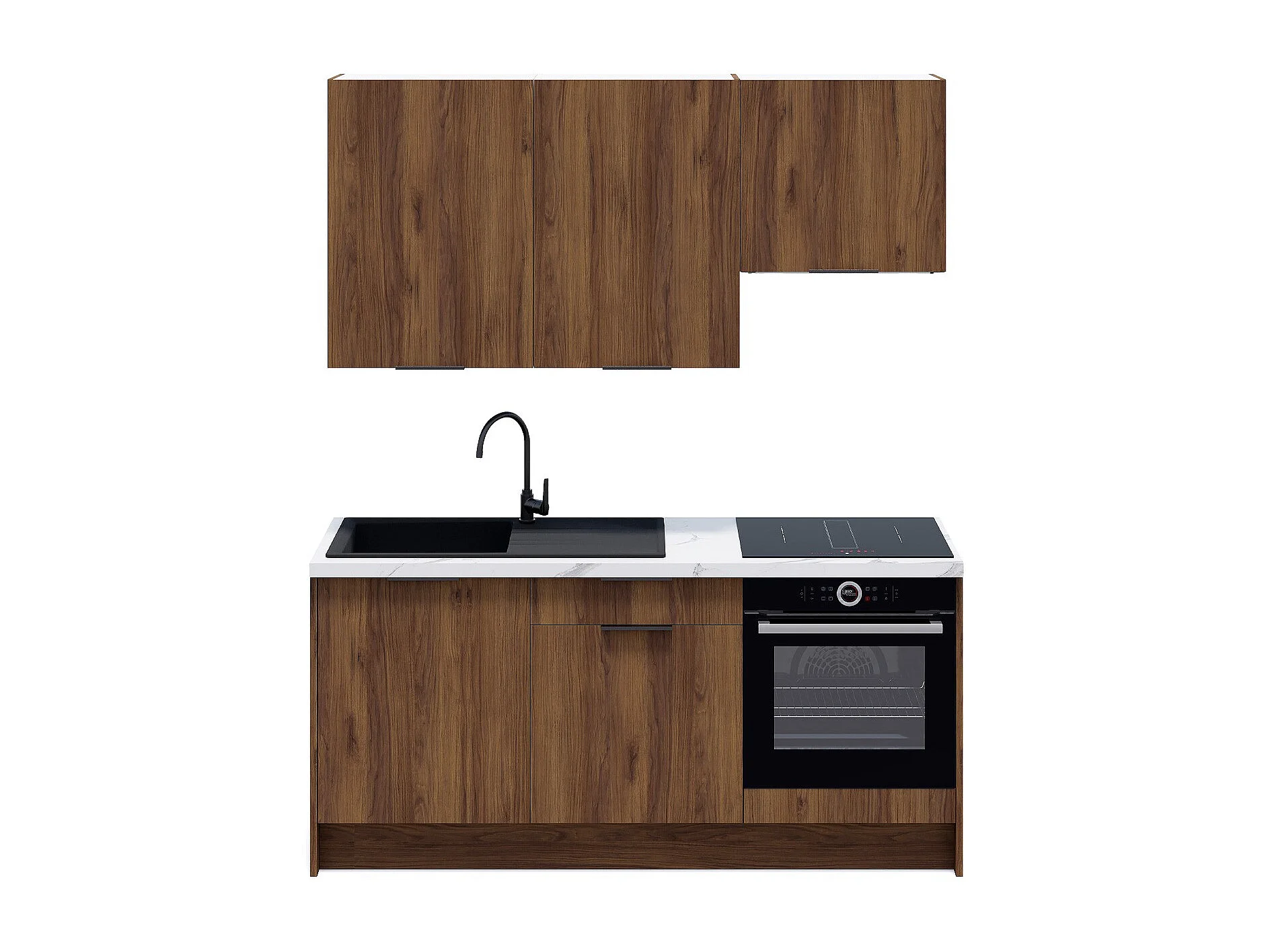 Ensemble de 6 meubles de cuisine - L. 185 cm - noyer brun - Sierra