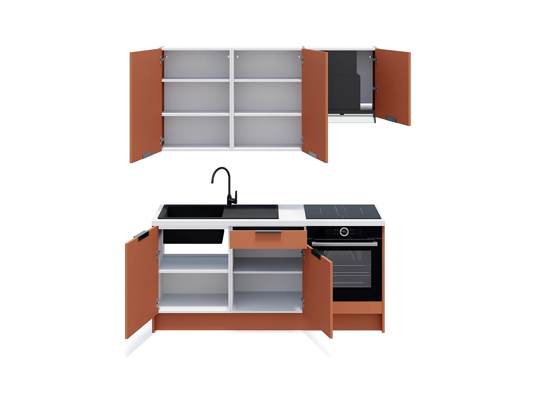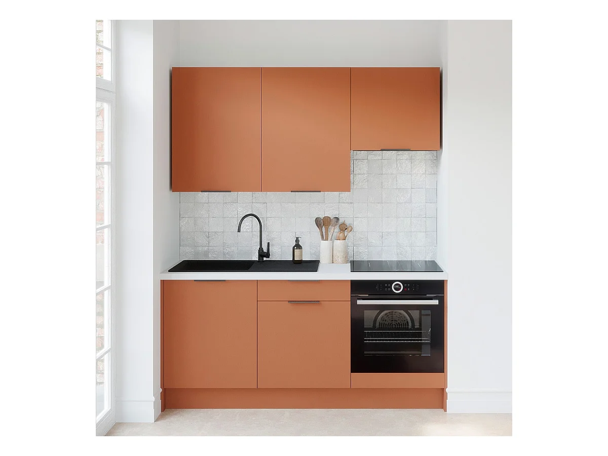Ensemble de 6 meubles de cuisine - L. 185 cm - terracotta - Luzia