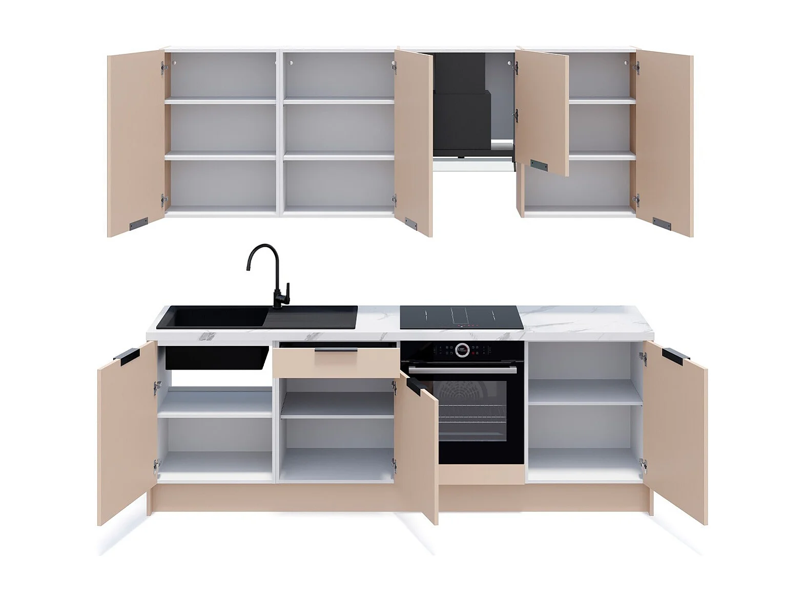 Ensemble de 8 meubles de cuisine - L. 245 cm - beige cachemire - Luzia