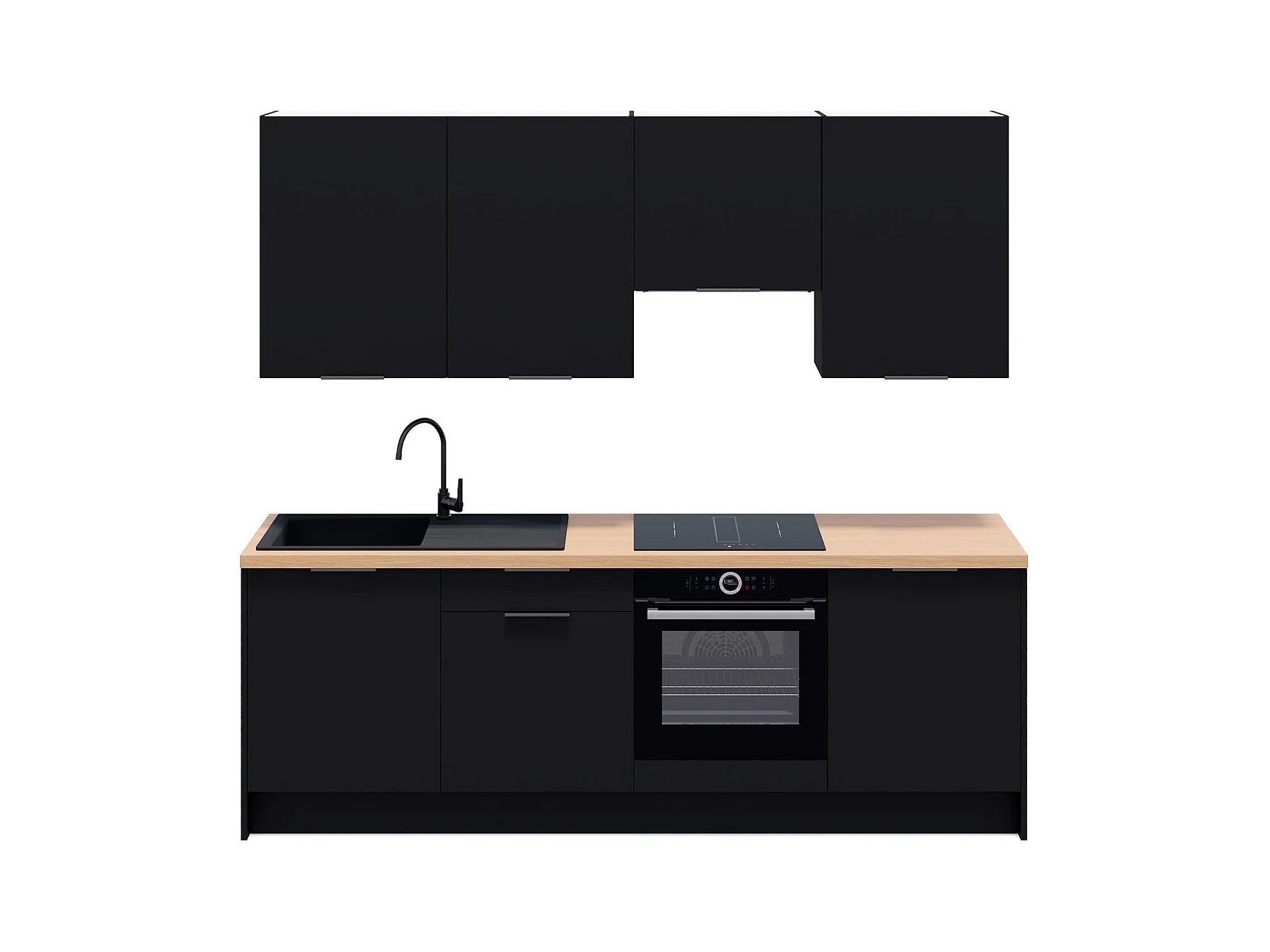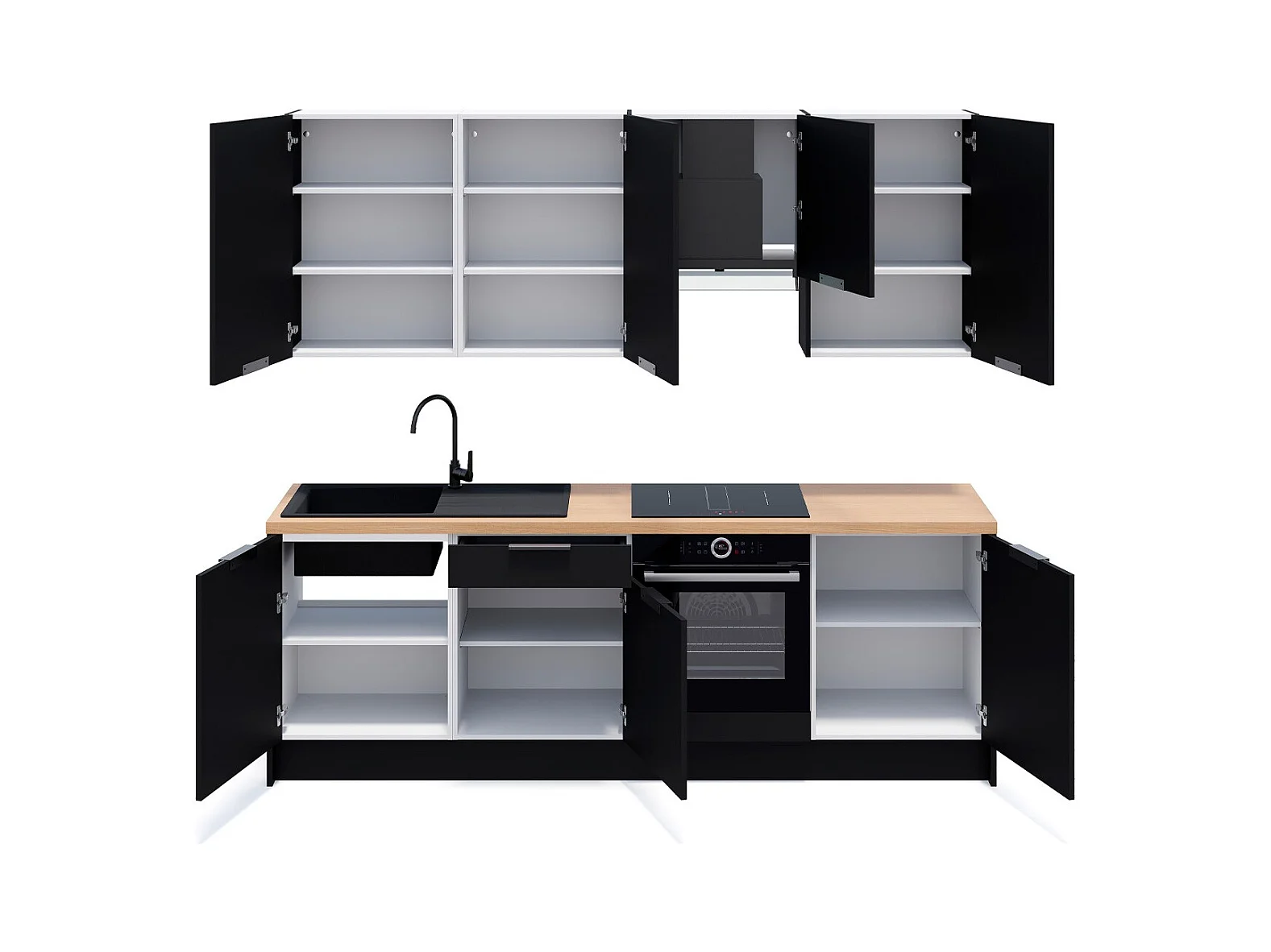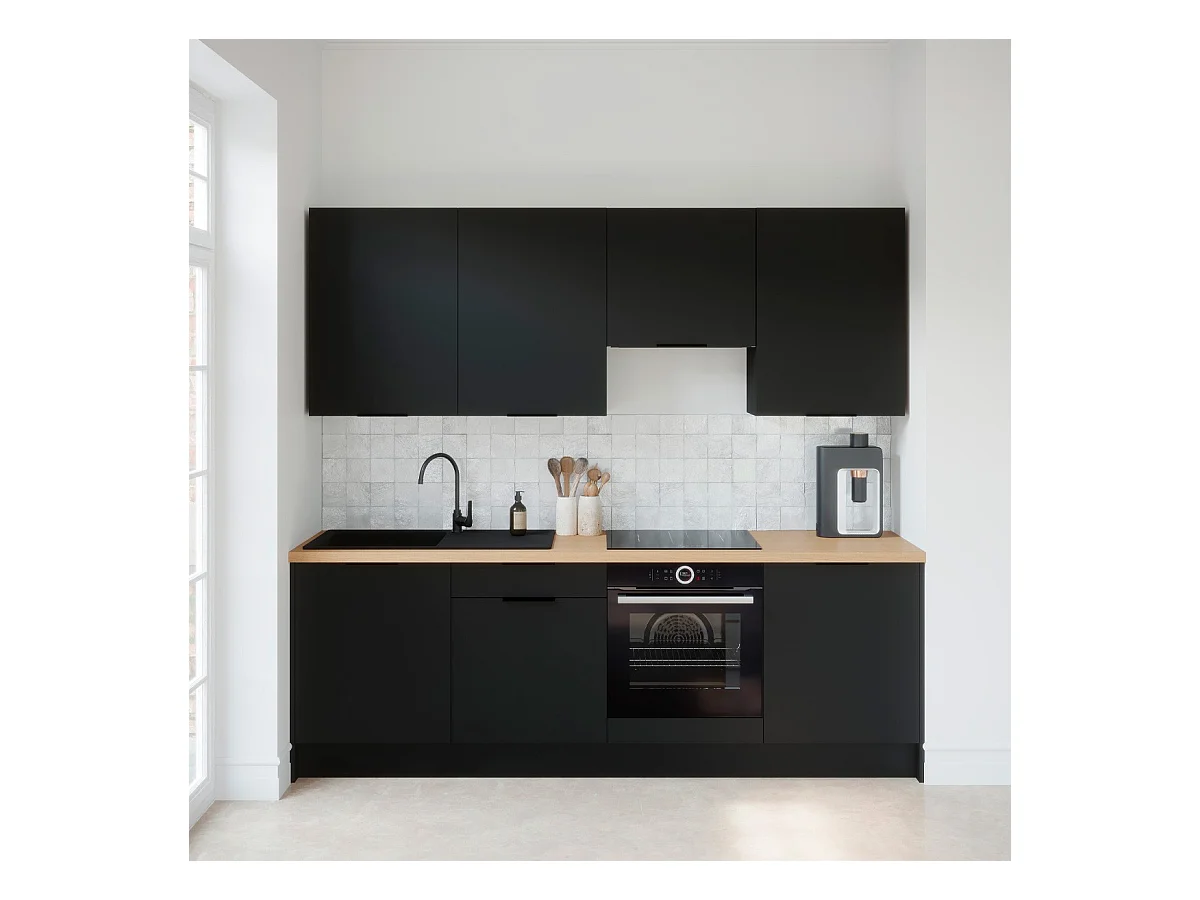 Ensemble de 8 meubles de cuisine - L. 245 cm - noir - Luzia