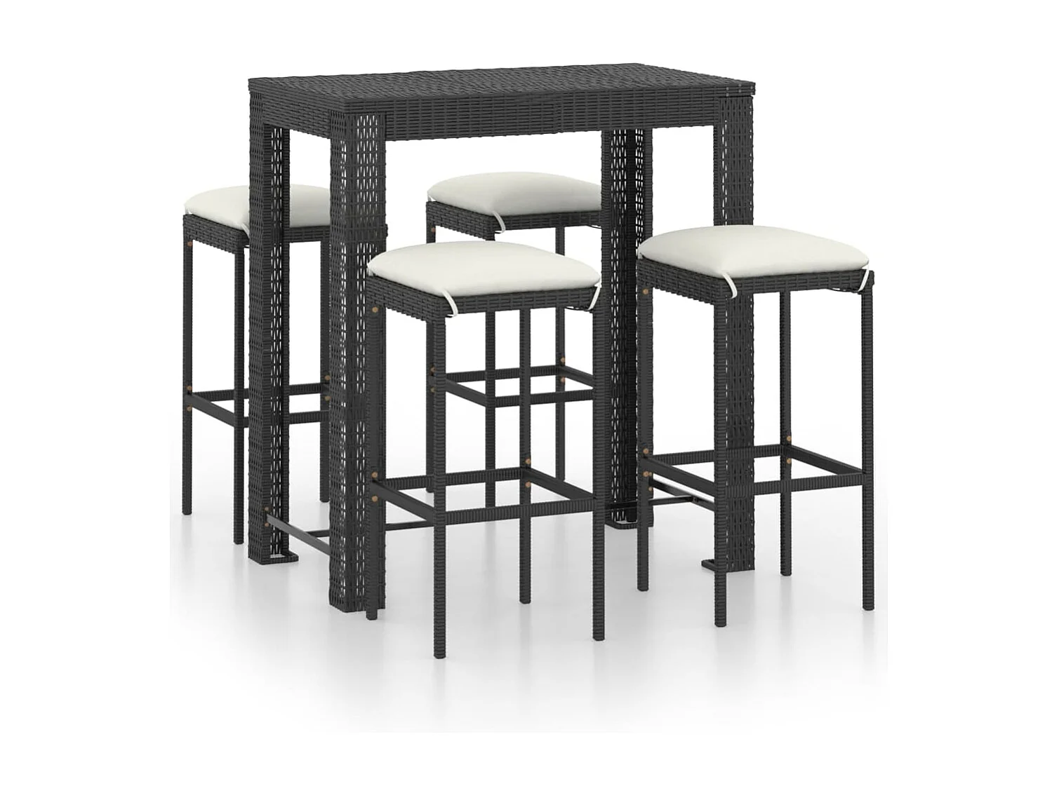 Ensemble de bar de jardin 5 pcs et coussins Résine tressée Noir 4