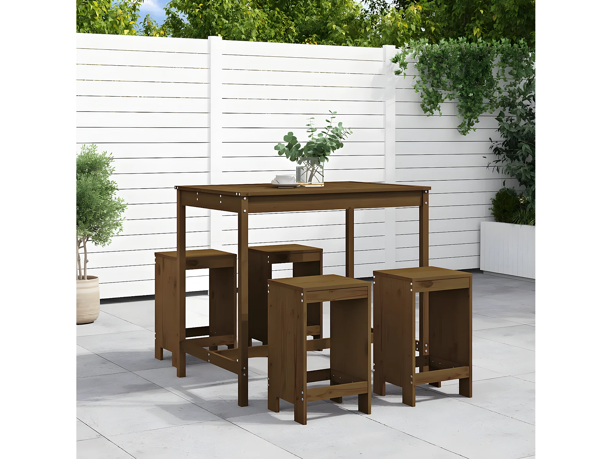Ensemble de bar de jardin 5 pcs marron miel bois de pin massif