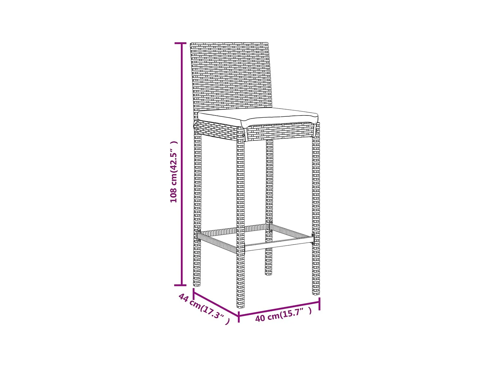 Ensemble de bar de jardin 5 pièces avec coussins gris poly rotin