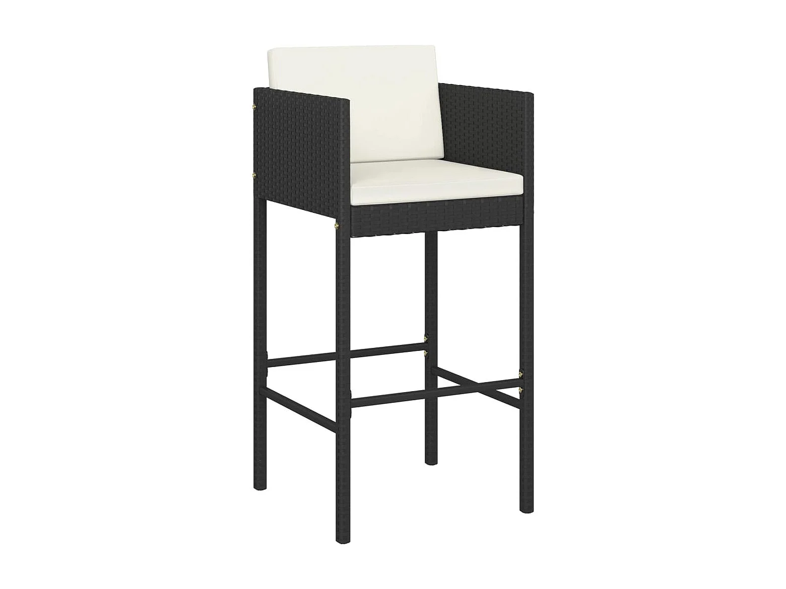 Ensemble de bar de jardin 7 pièces avec coussins noir poly rotin