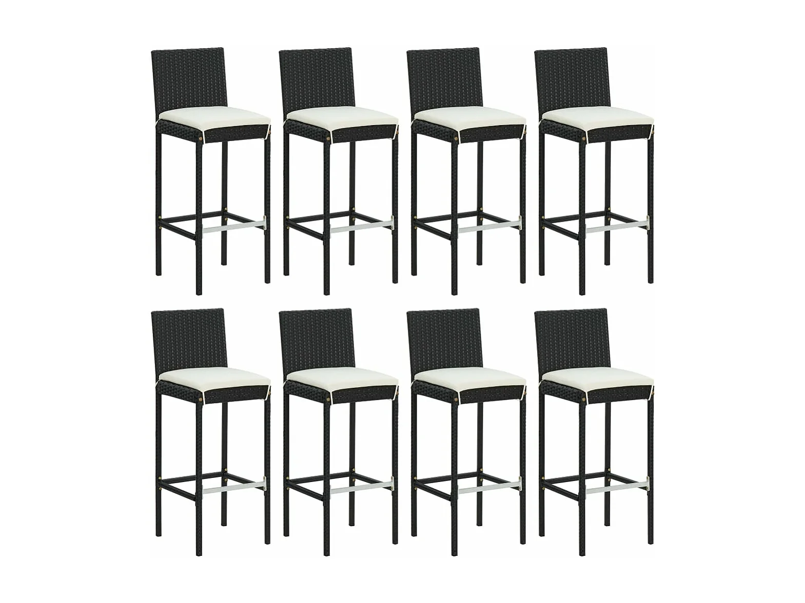 Ensemble de bar de jardin 9 pcs avec coussins noir poly rotin