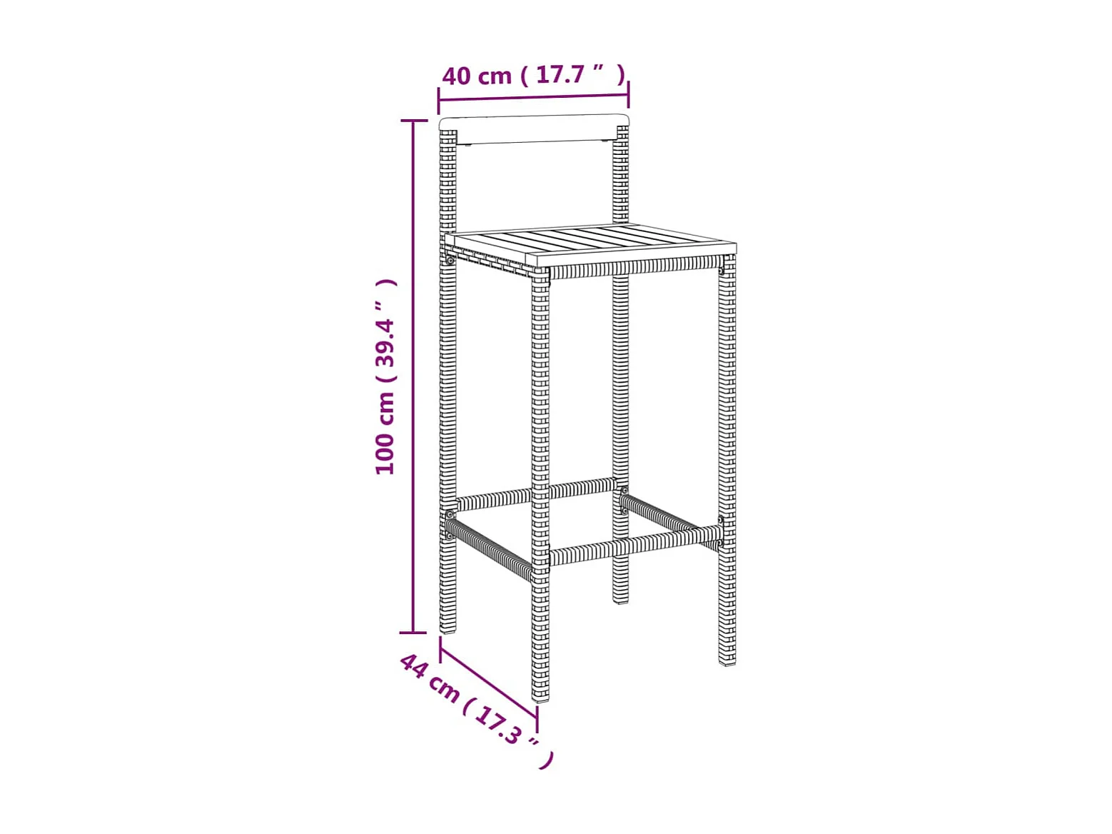 Ensemble de bar jardin 5 pièces gris poly rotin/bois massif acacia