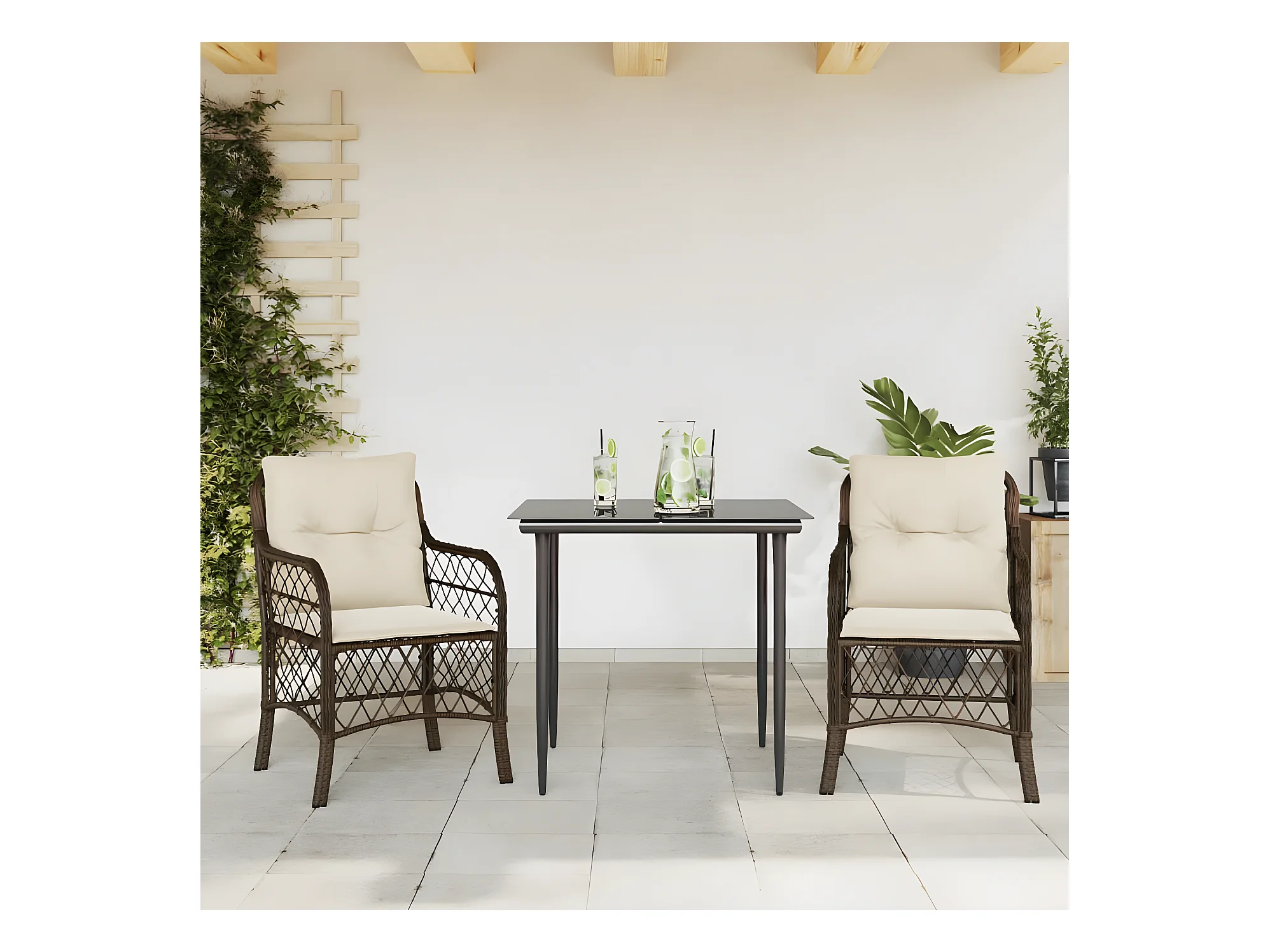 Ensemble de bistro 3 pcs avec coussins marron résine tressée GFDF61425