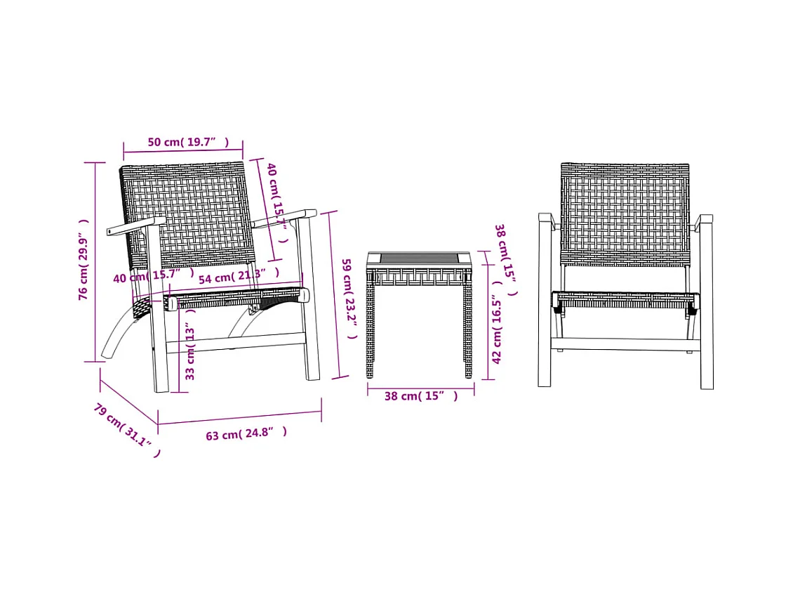 Cuenca - Ensemble de jardin 2 chaises 1 table en bois - Couleur : Naturel