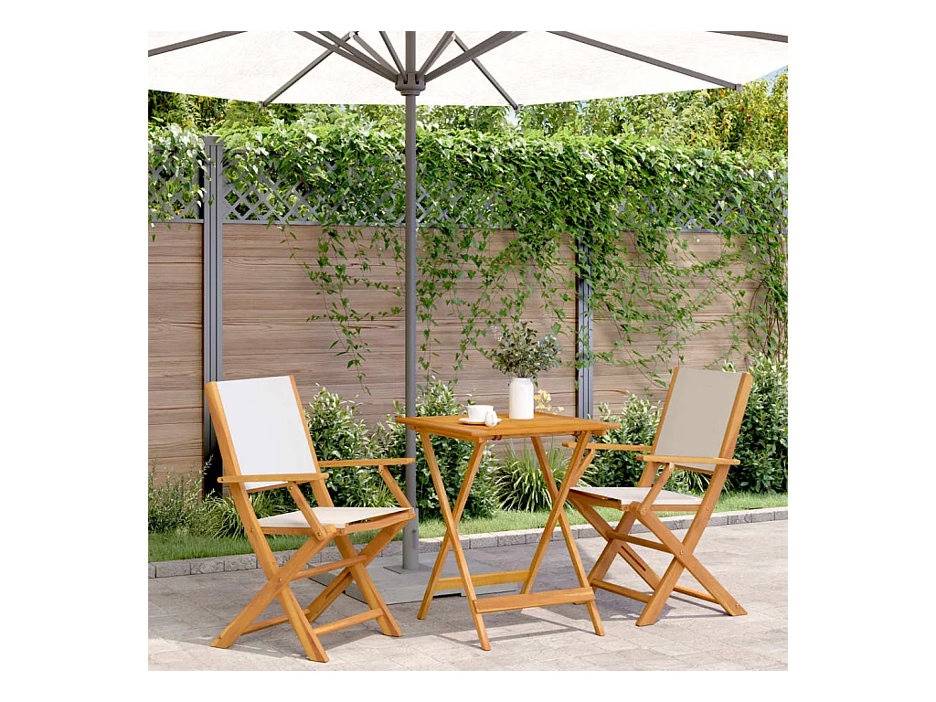 Ensemble de bistro 3 pcs blanc crème tissu et bois massif FR15815