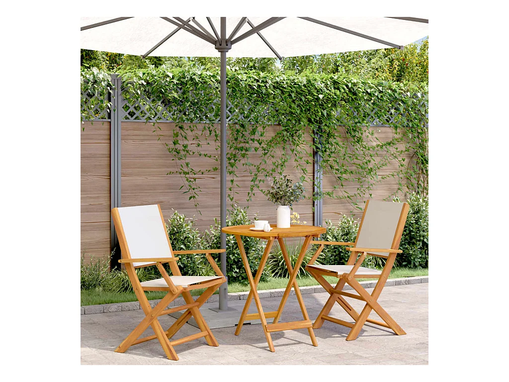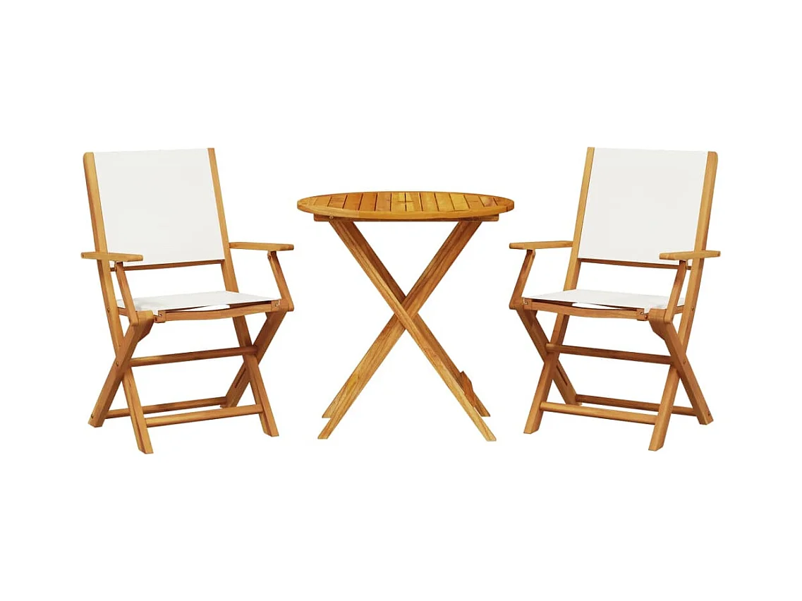 Ensemble de bistro 3 pcs blanc crème tissu et bois massif FR22649