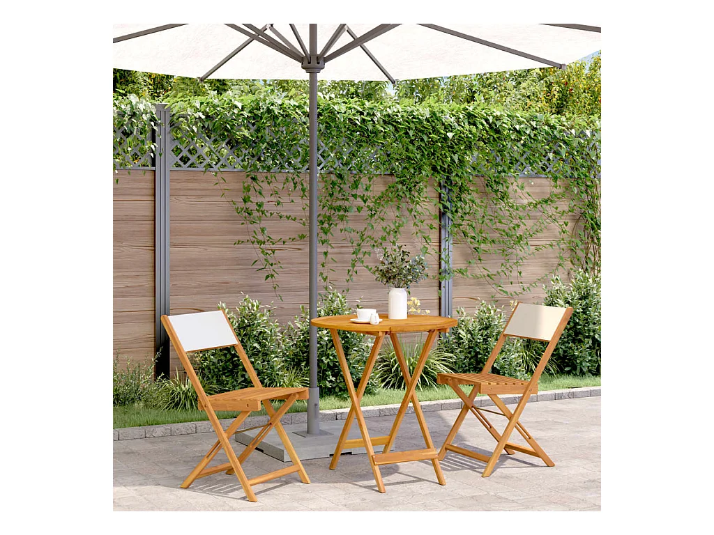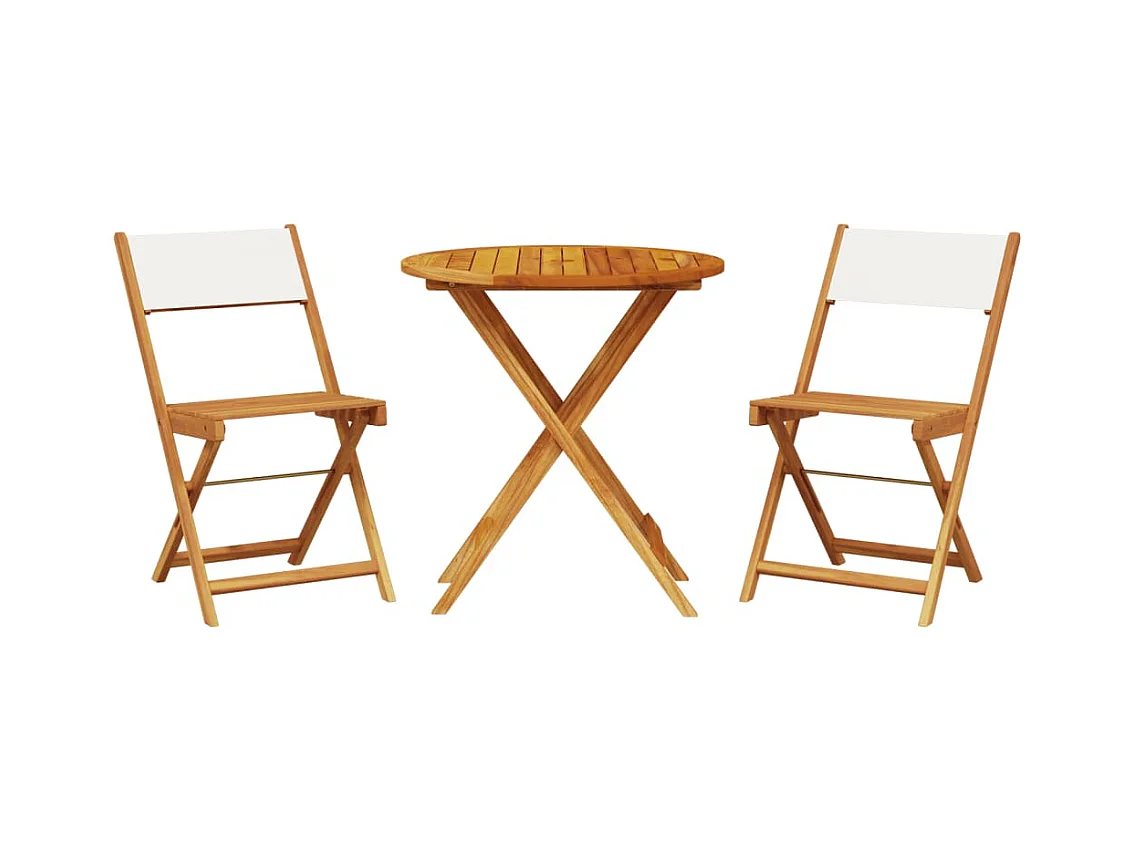 Ensemble de bistro 3 pcs blanc crème tissu et bois massif FR40560