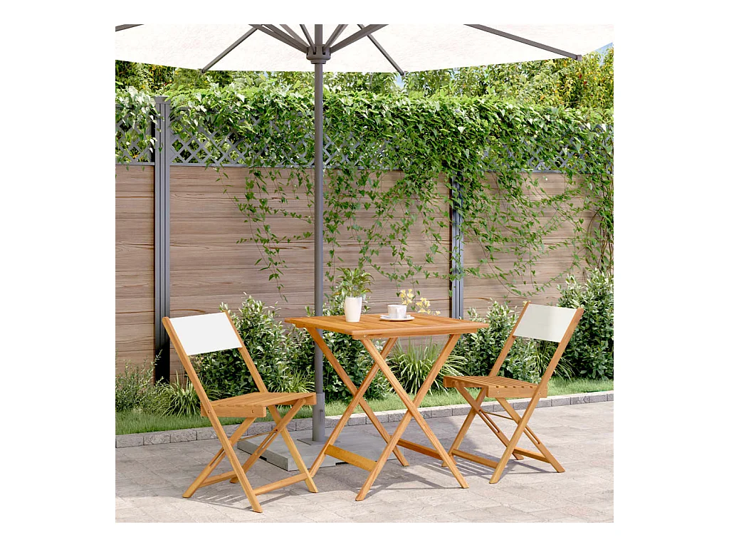 Ensemble de bistro 3 pcs blanc crème tissu et bois massif FR68689