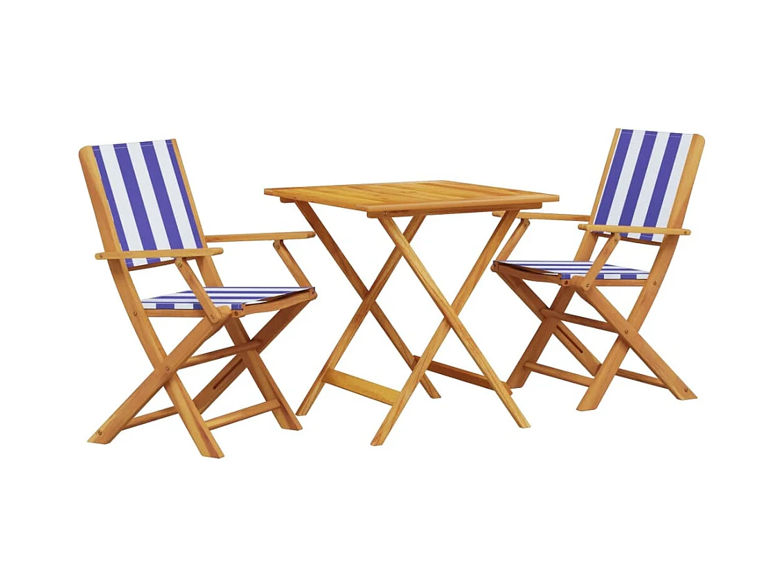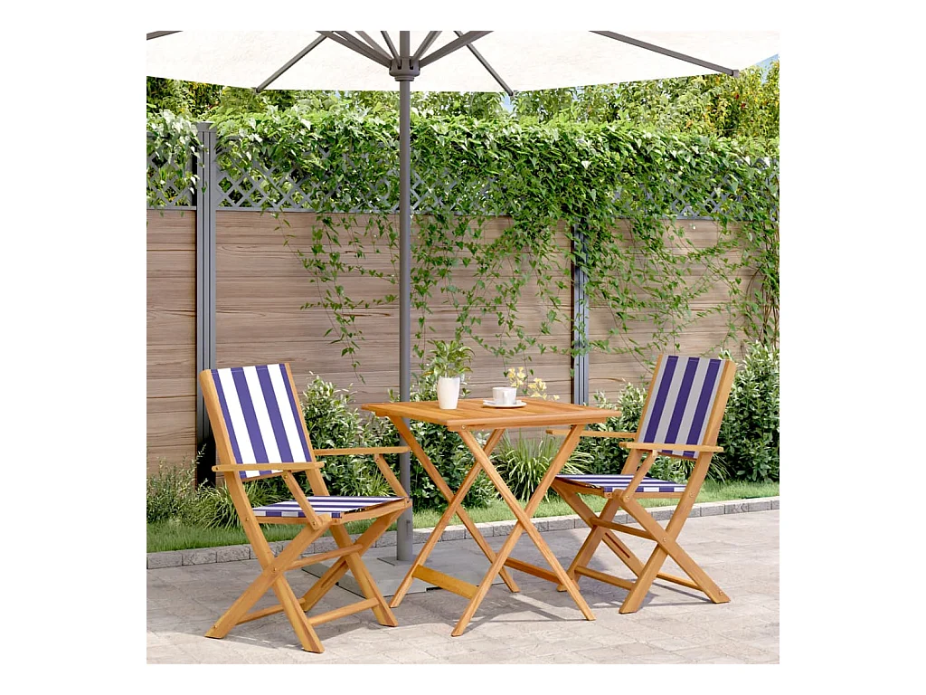 Ensemble de bistro 3 pcs bleu et blanc tissu et bois massif FR48756