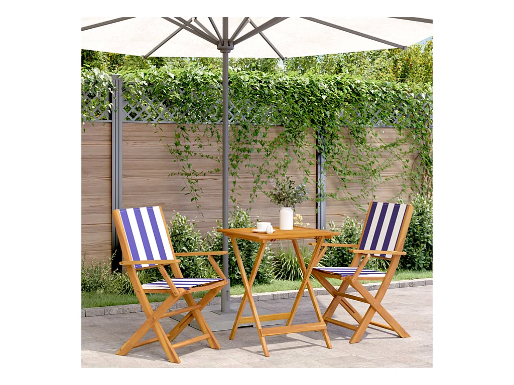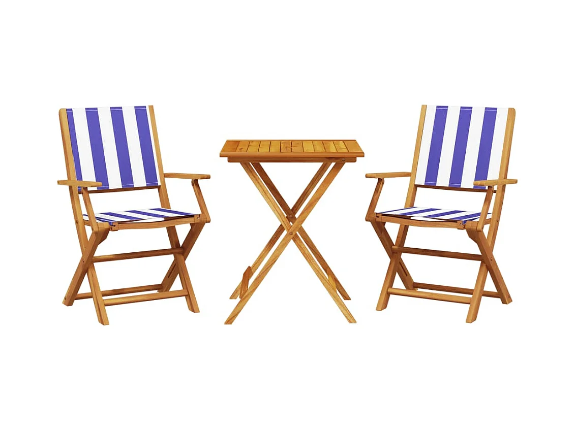 Ensemble de bistro 3 pcs bleu et blanc tissu et bois massif FR71649