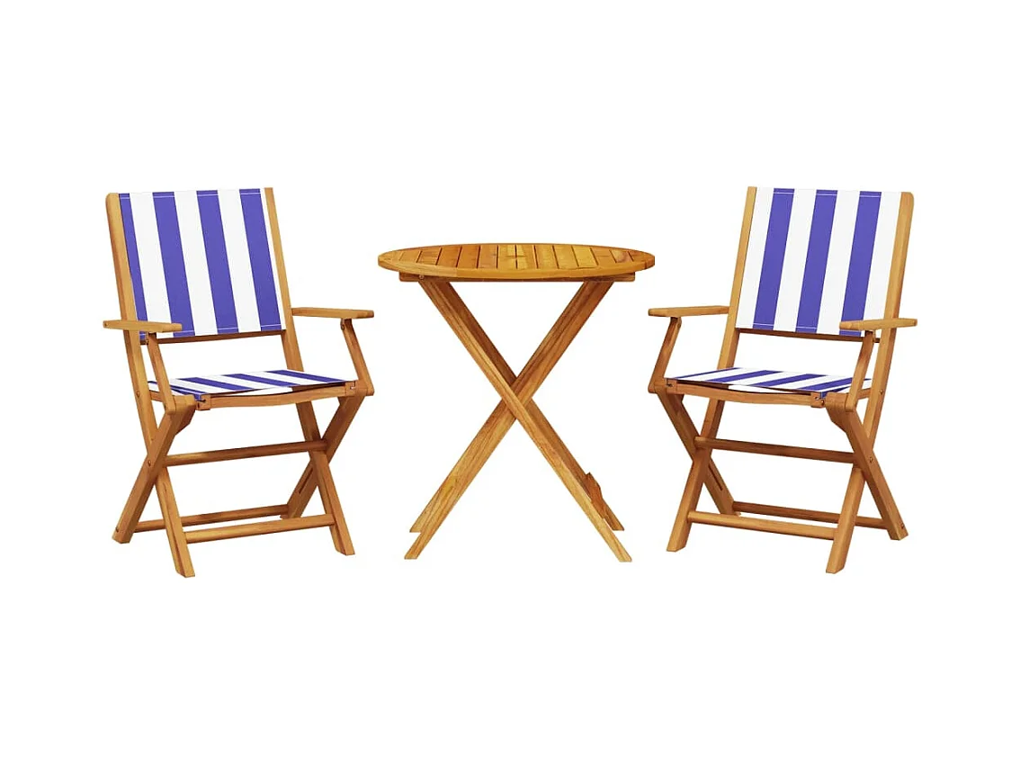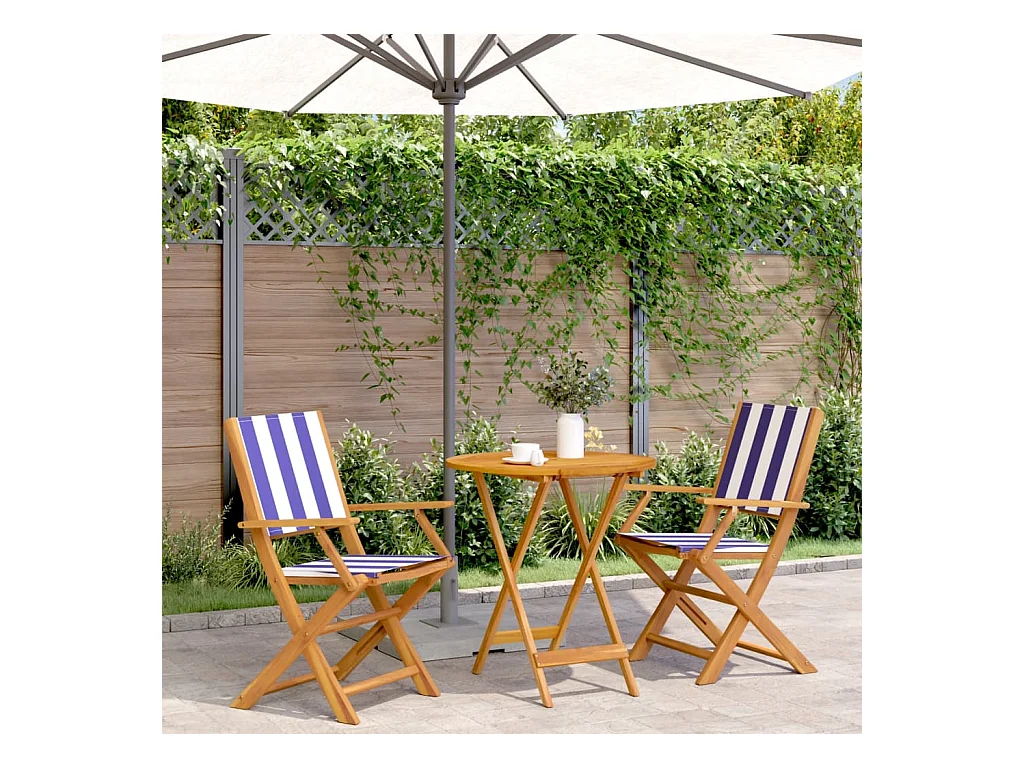 Ensemble de bistro 3 pcs bleu et blanc tissu et bois massif FR79038