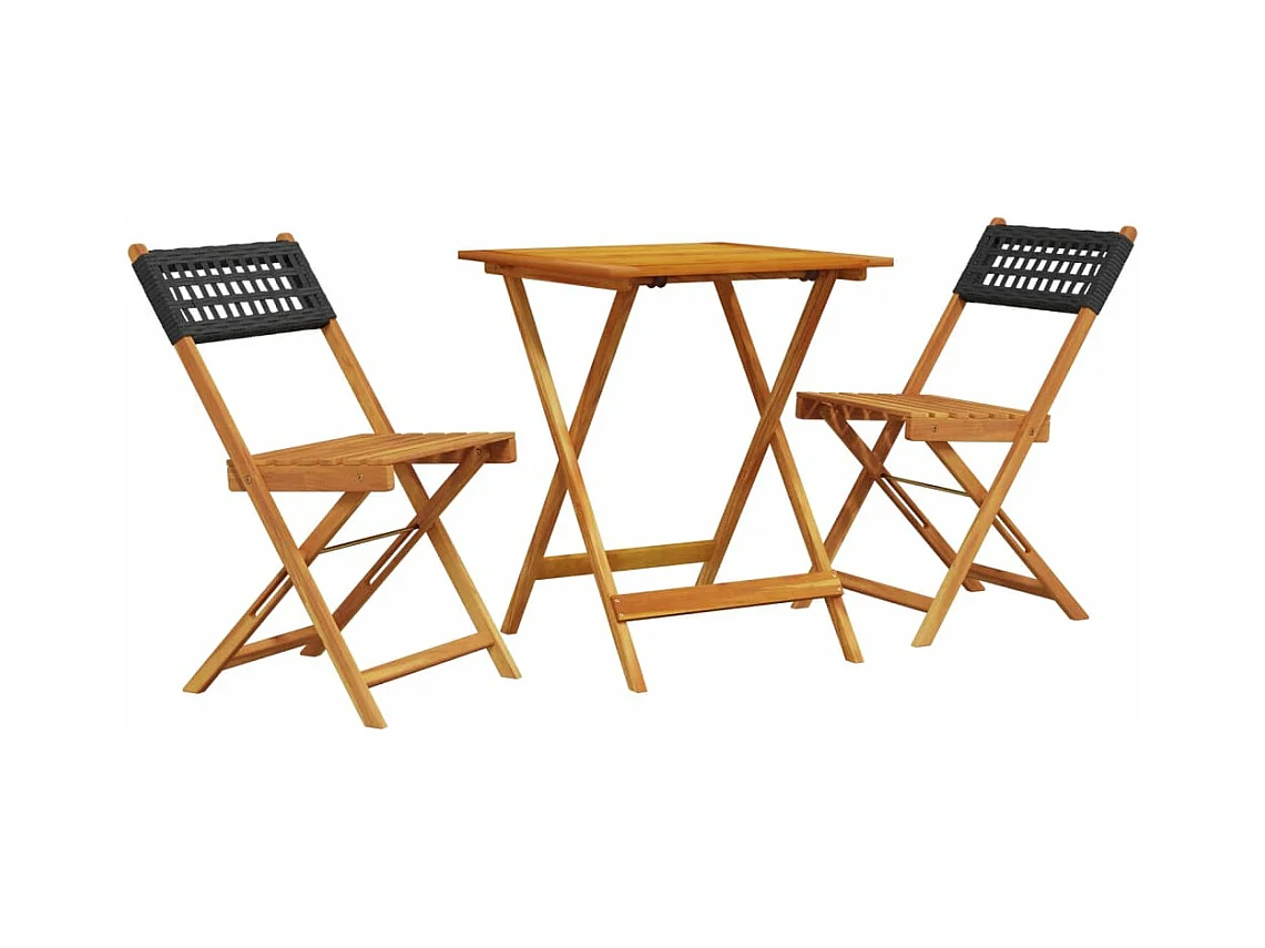 Ensemble de bistro 3 pcs noir résine tressée et bois massif