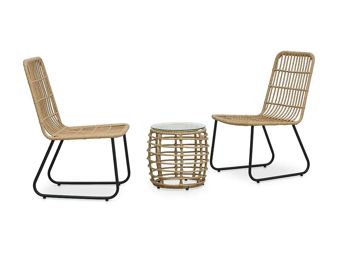 Ensemble de bistro 3 pcs Résine tressée Chêne