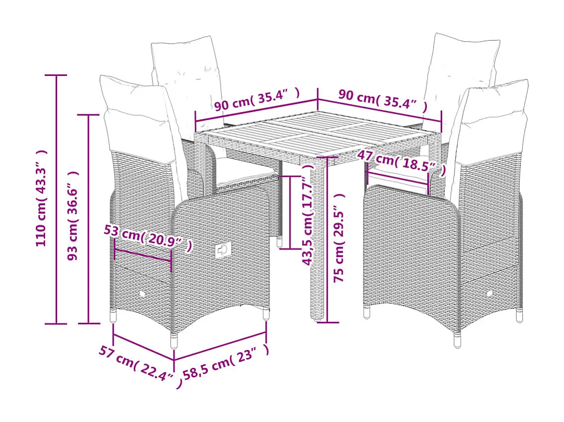Ensemble de bistro de jardin 5 pcs coussins gris poly rotin