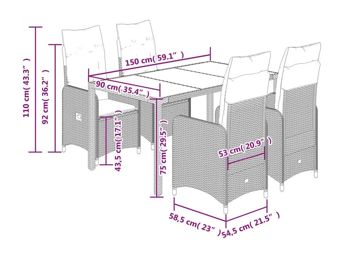 Ensemble de bistro de jardin 5 pcs coussins marron poly rotin