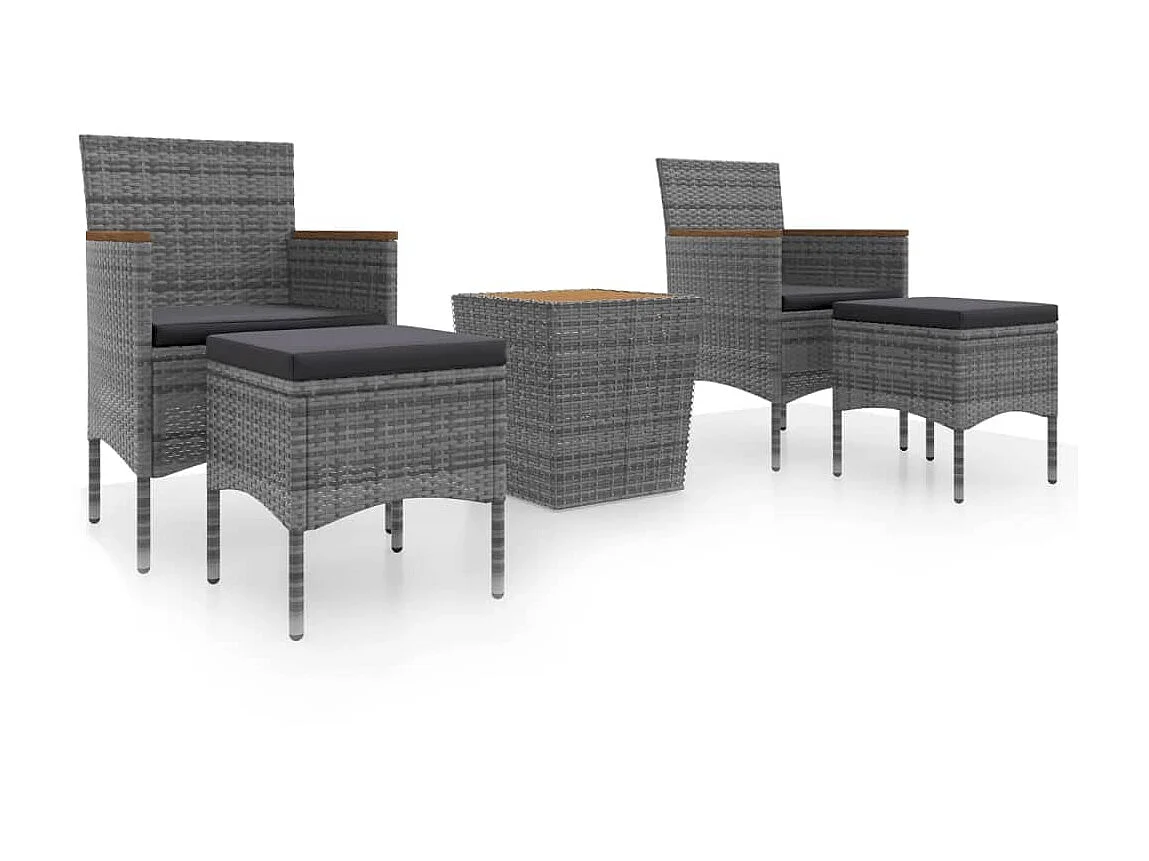 Ensemble de bistro de jardin 5pcs Résine tressée et acacia Gris
