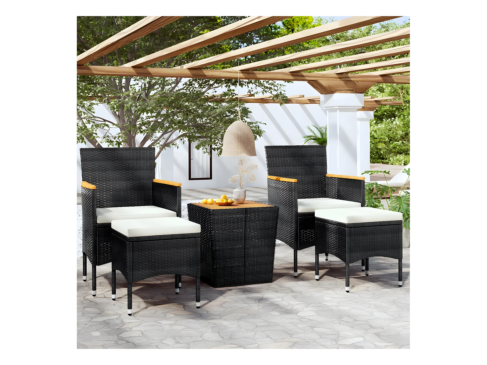 Ensemble de bistro de jardin 5pcs Résine tressée et acacia Noir GFDF13402