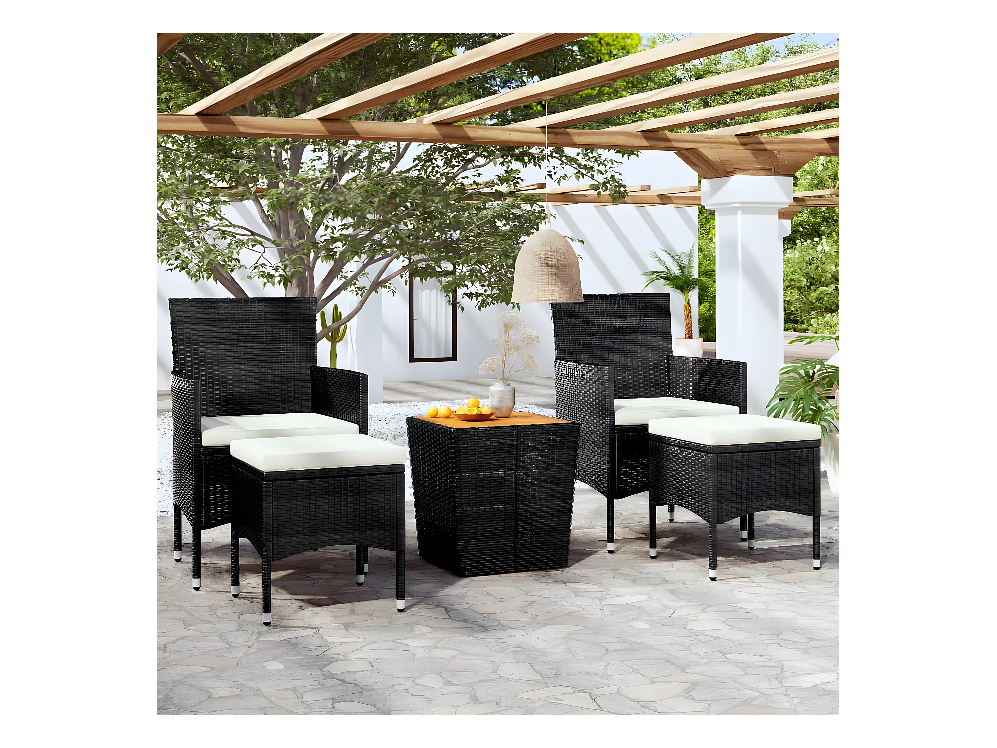 Ensemble de bistro de jardin 5pcs Résine tressée et acacia Noir GFDF38355
