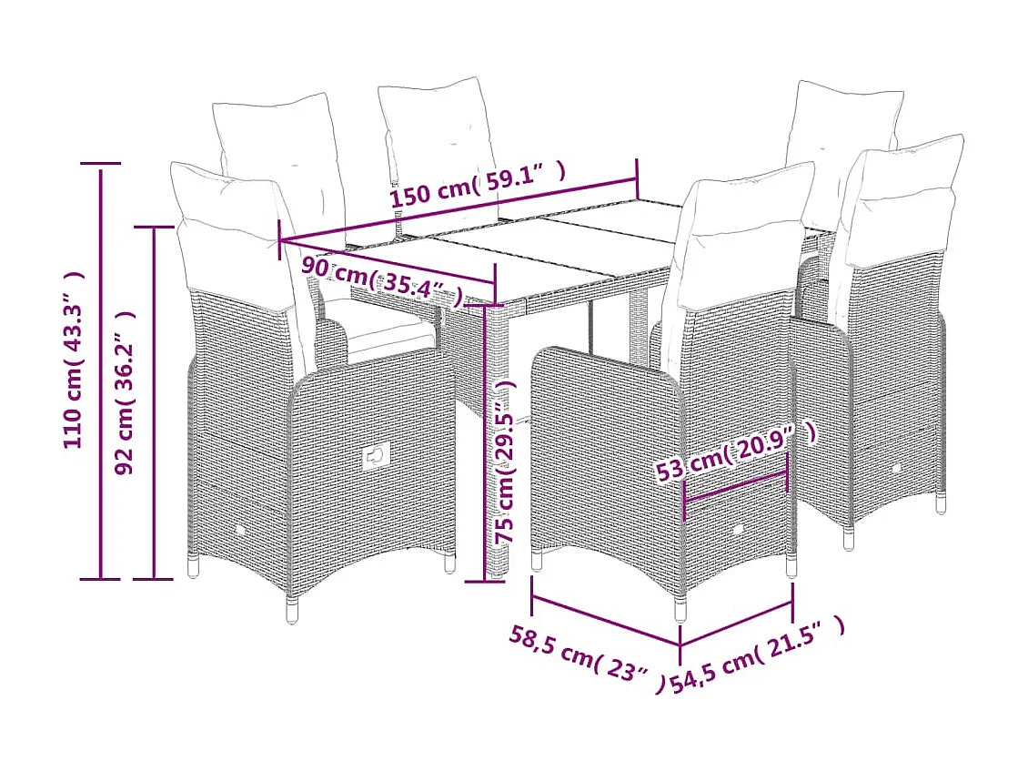 Ensemble de bistro de jardin 7 pcs coussins marron poly rotin