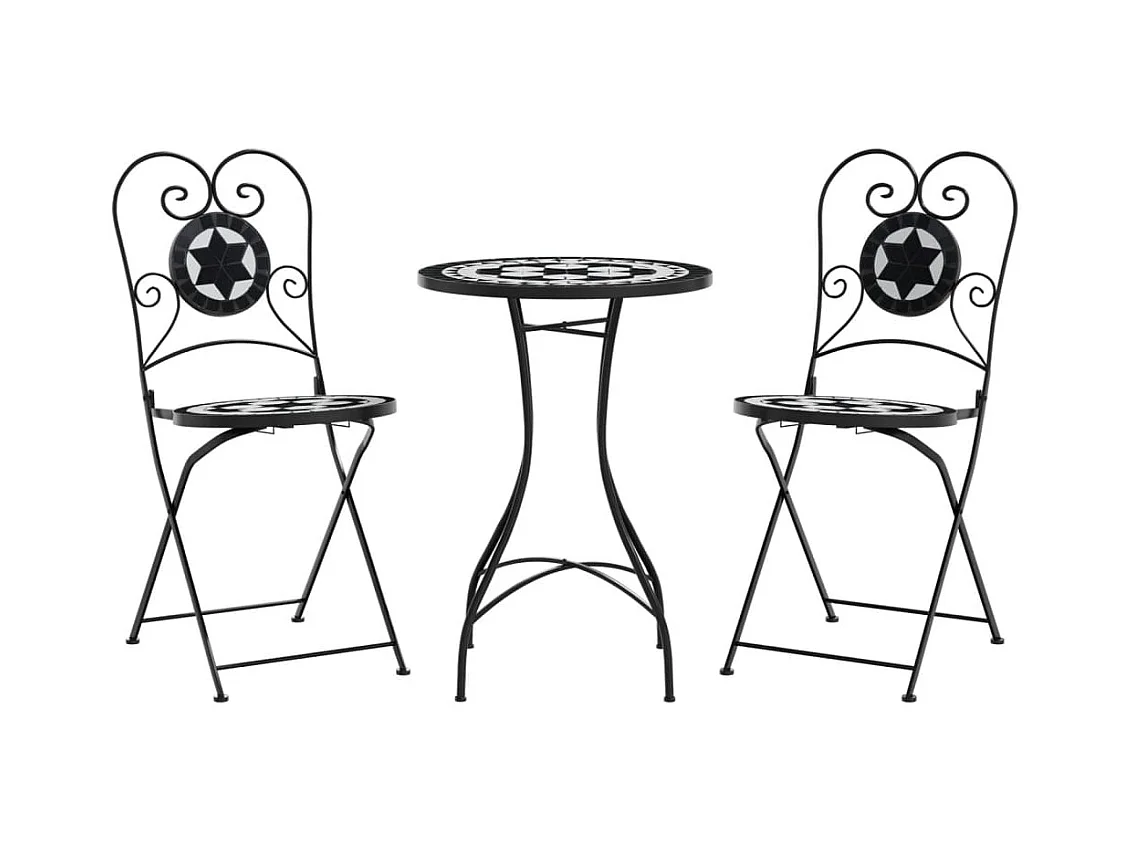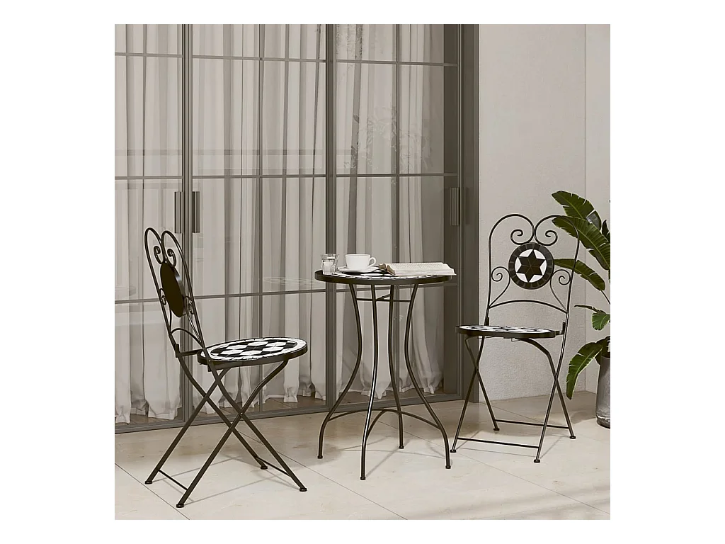 Ensemble de bistro mosaïque noir et blanc fer et céramique FR40678