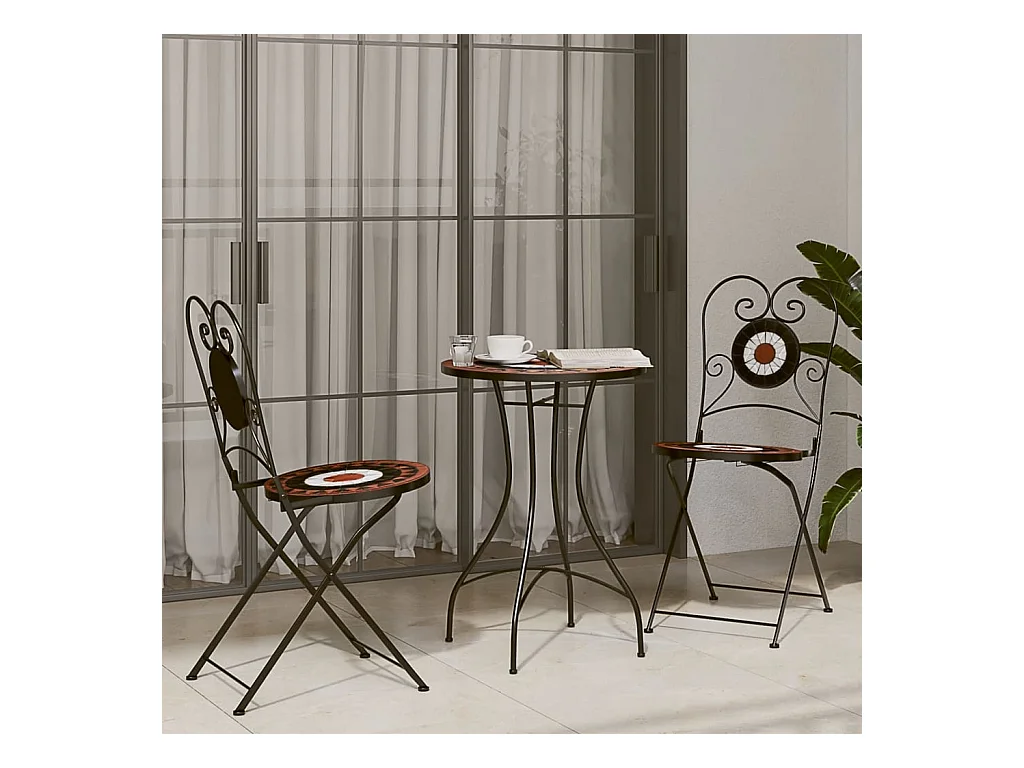 Ensemble de bistro mosaïque terre cuite blanc fer et céramique FR92920