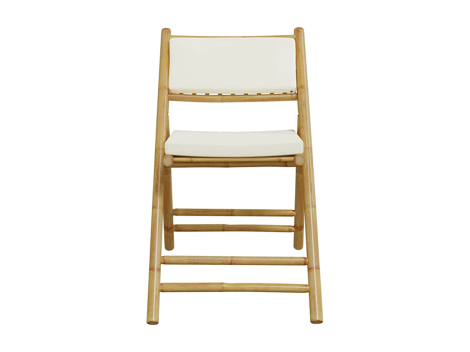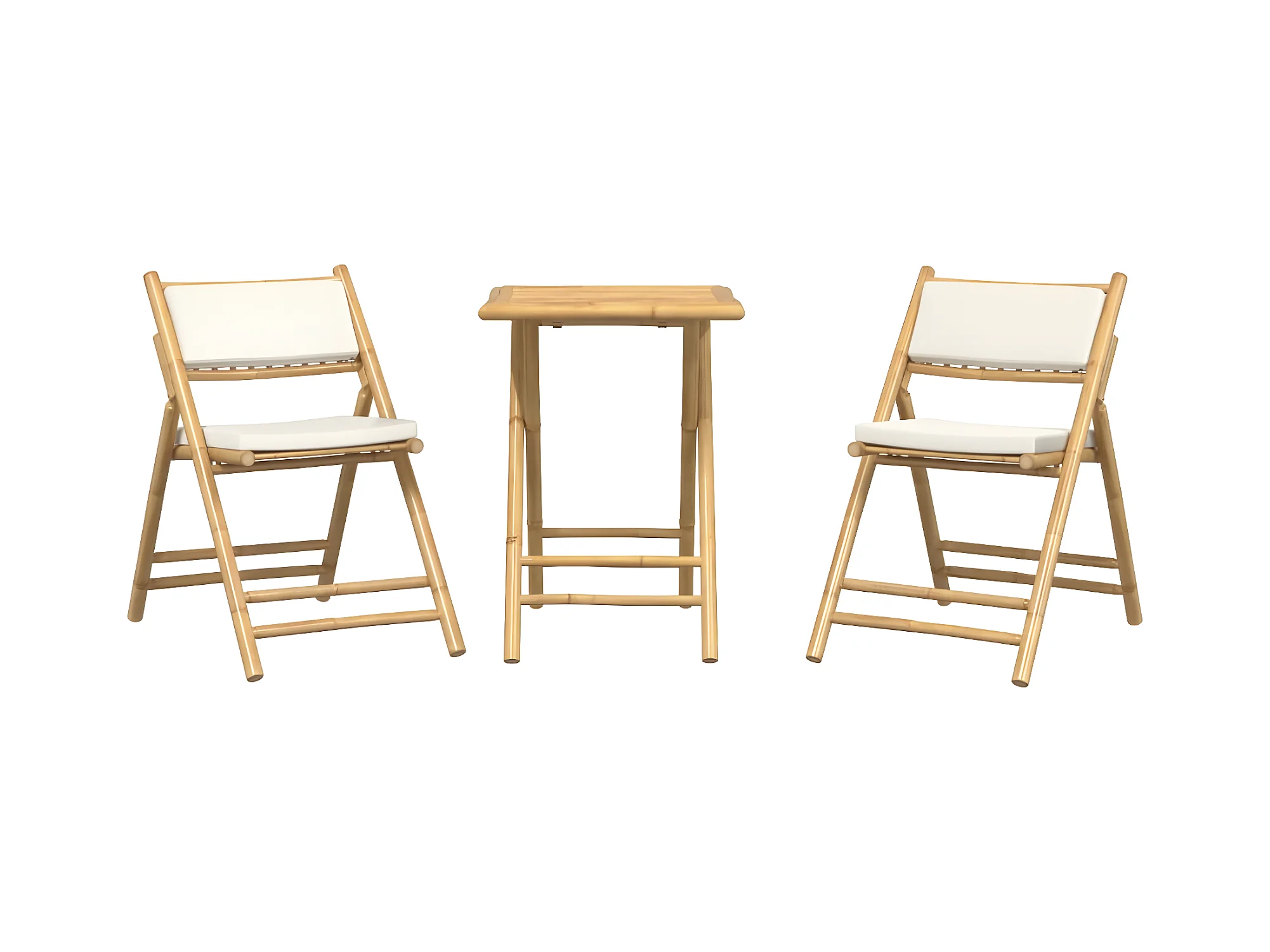 Ensemble de bistro pliante 3 pcs et coussins blanc crème bambou