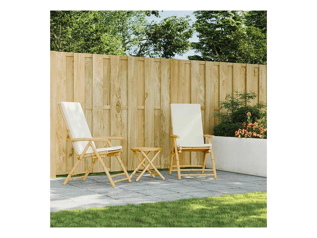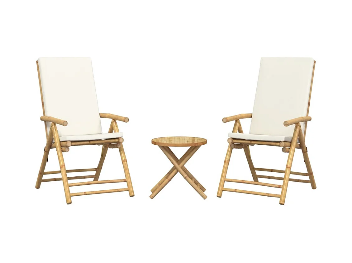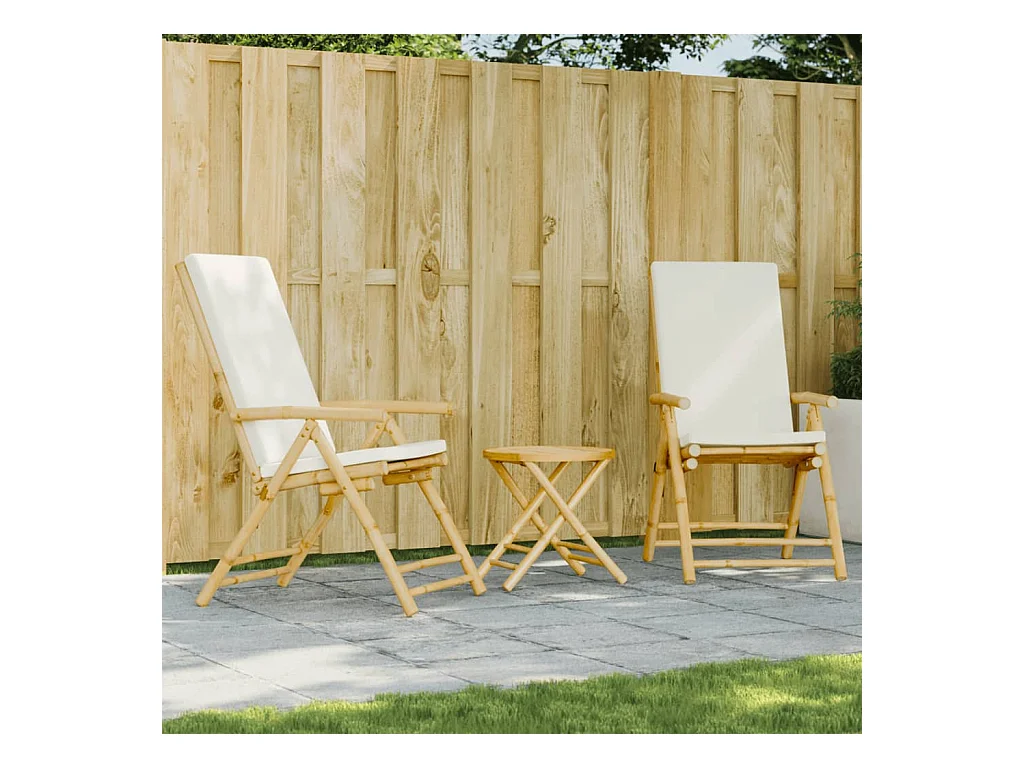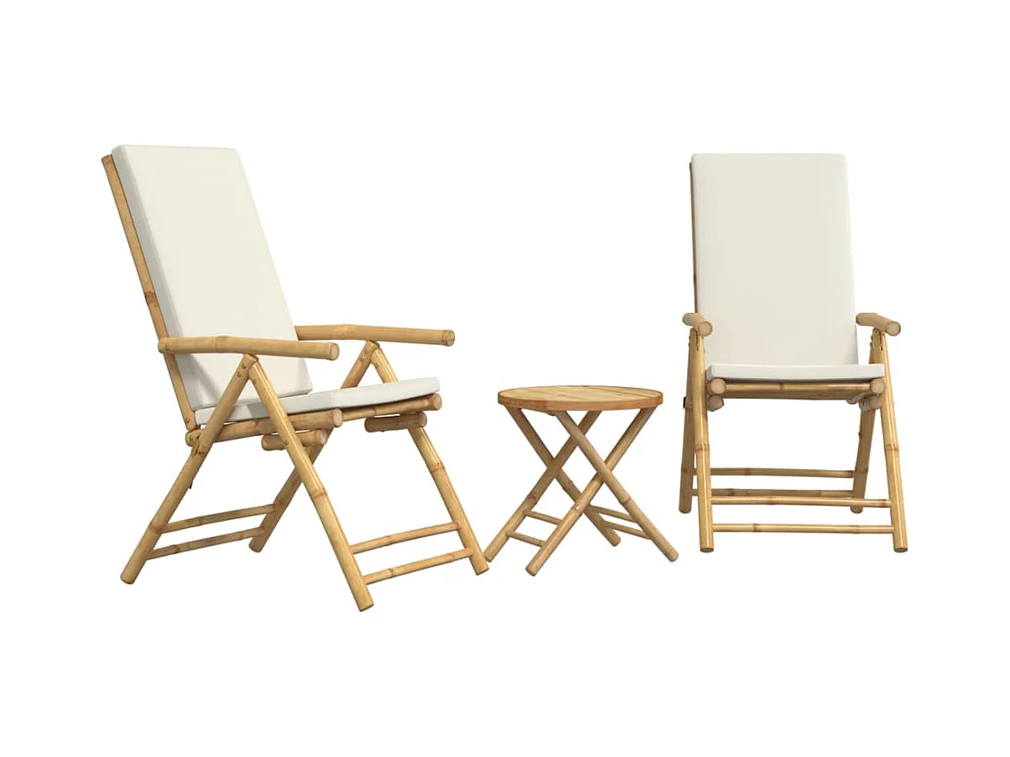 Ensemble de bistro pliante 3 pcs et coussins blanc crème bambou FR30808