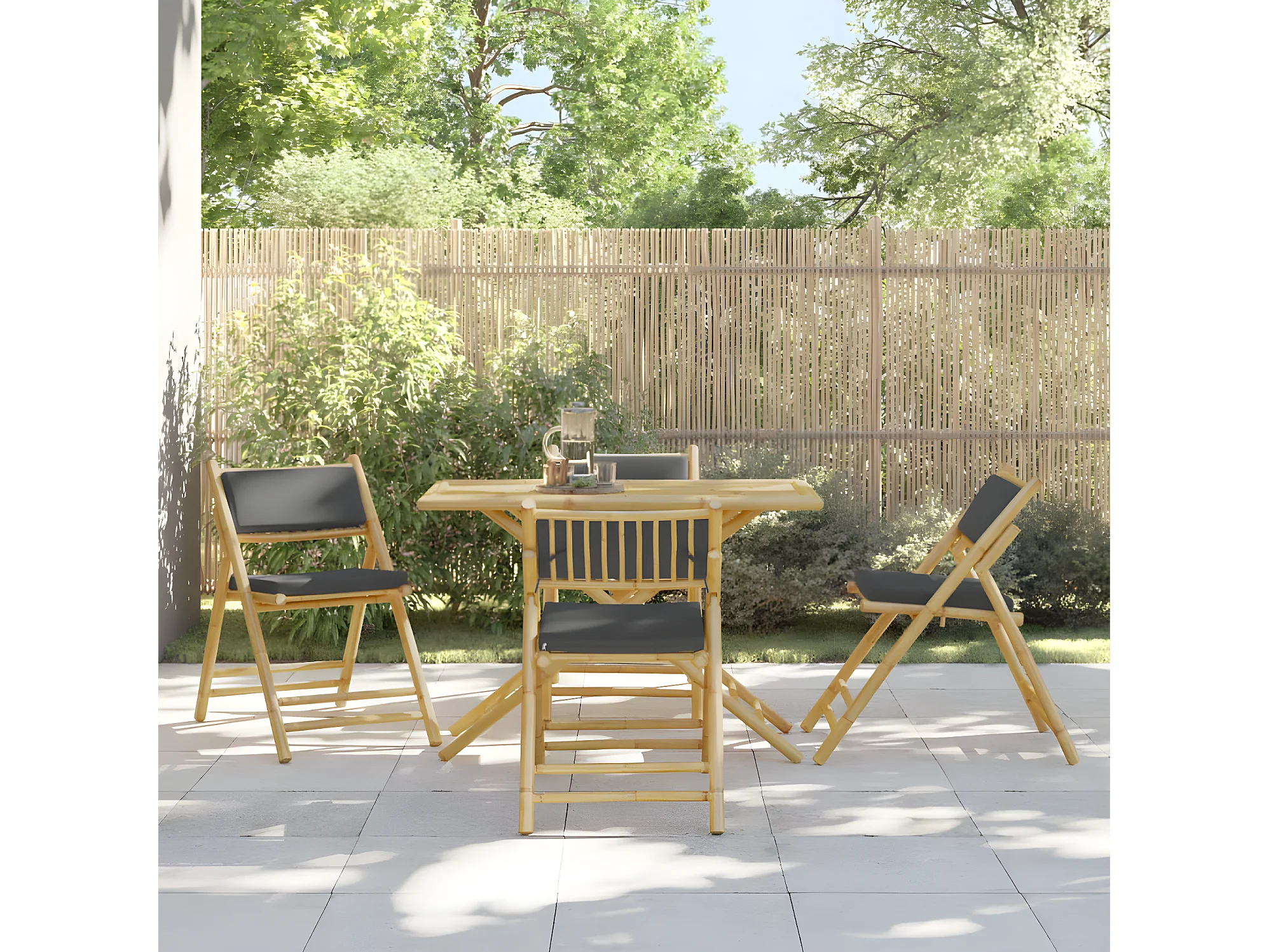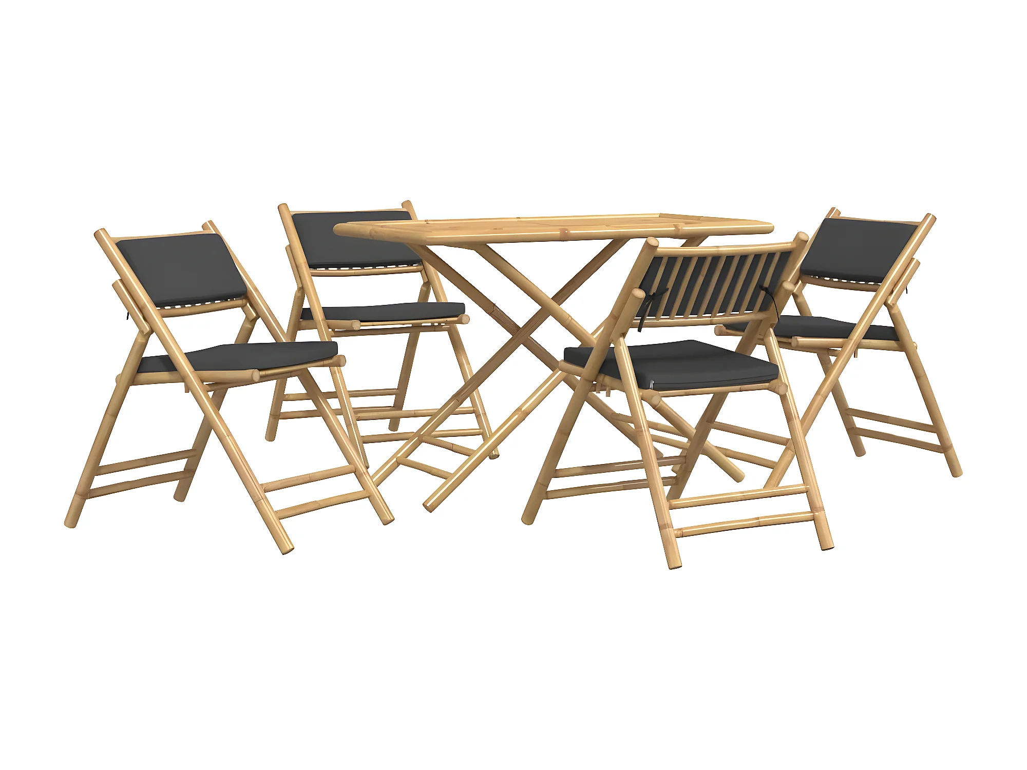 Ensemble de bistro pliante 5 pcs et coussins gris foncé bambou