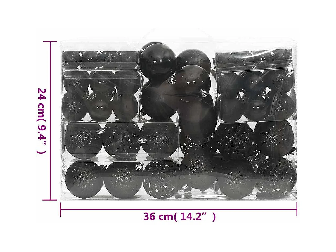 Ensemble de boules de Noël 111 pièces noir polystyrène