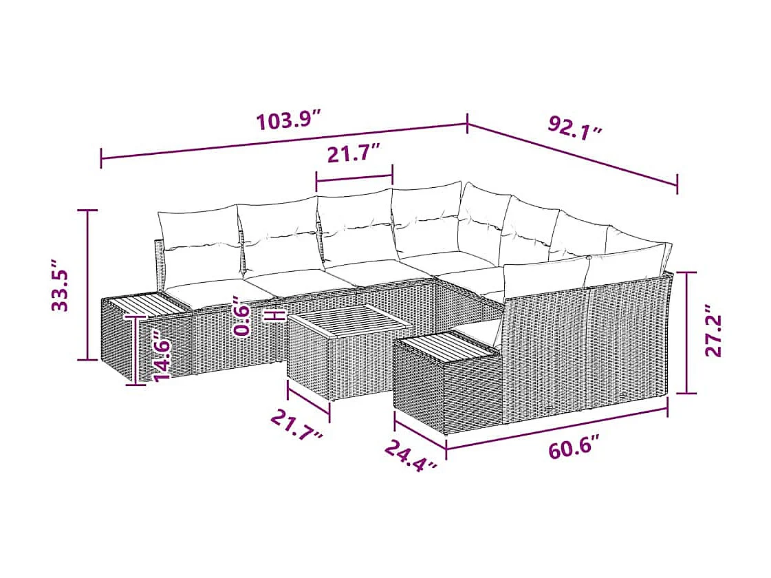 Ensemble de canapé de jardin avec coussin 9 pcs Noir Poly rotin