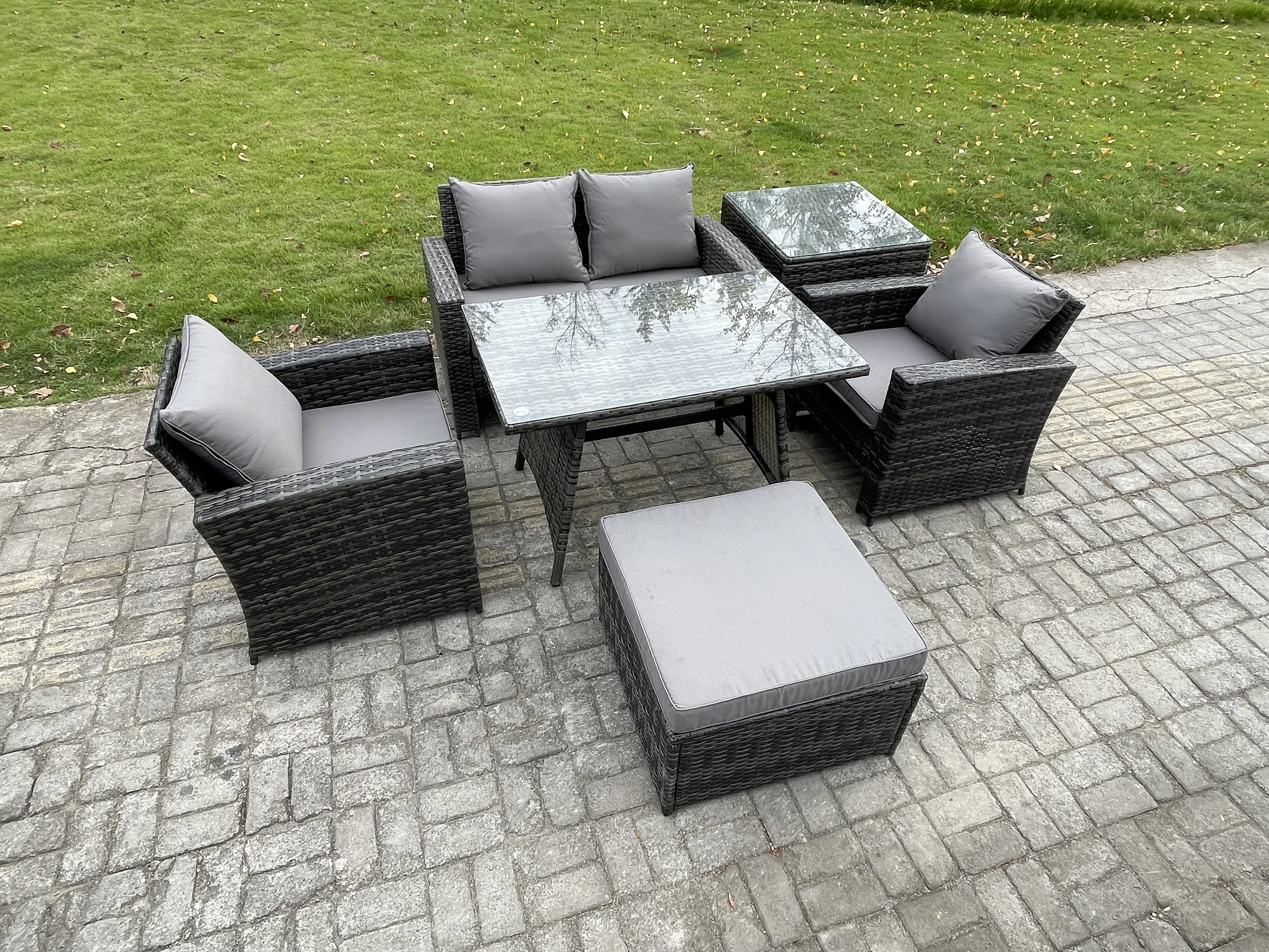 Ensemble de canapé en rotin extérieur avec Table à manger Grand tabouret Table d'appoint Gris foncé mixte
