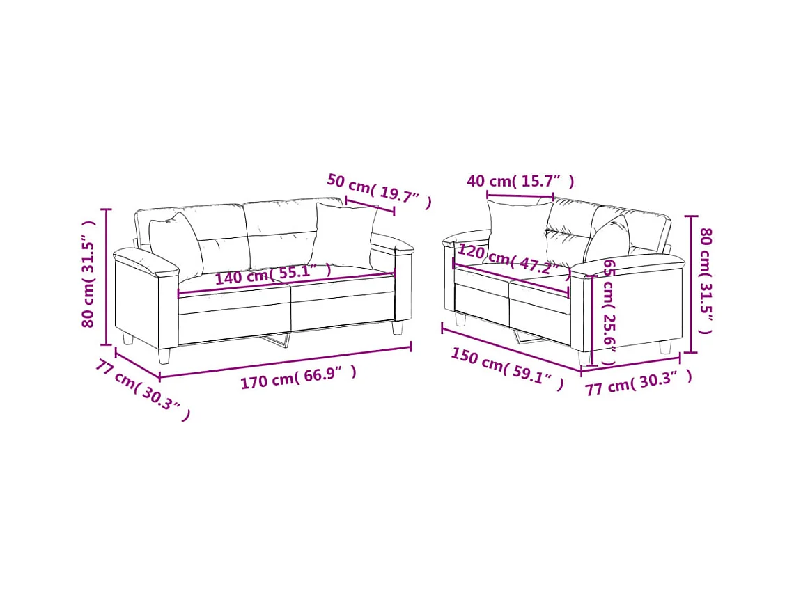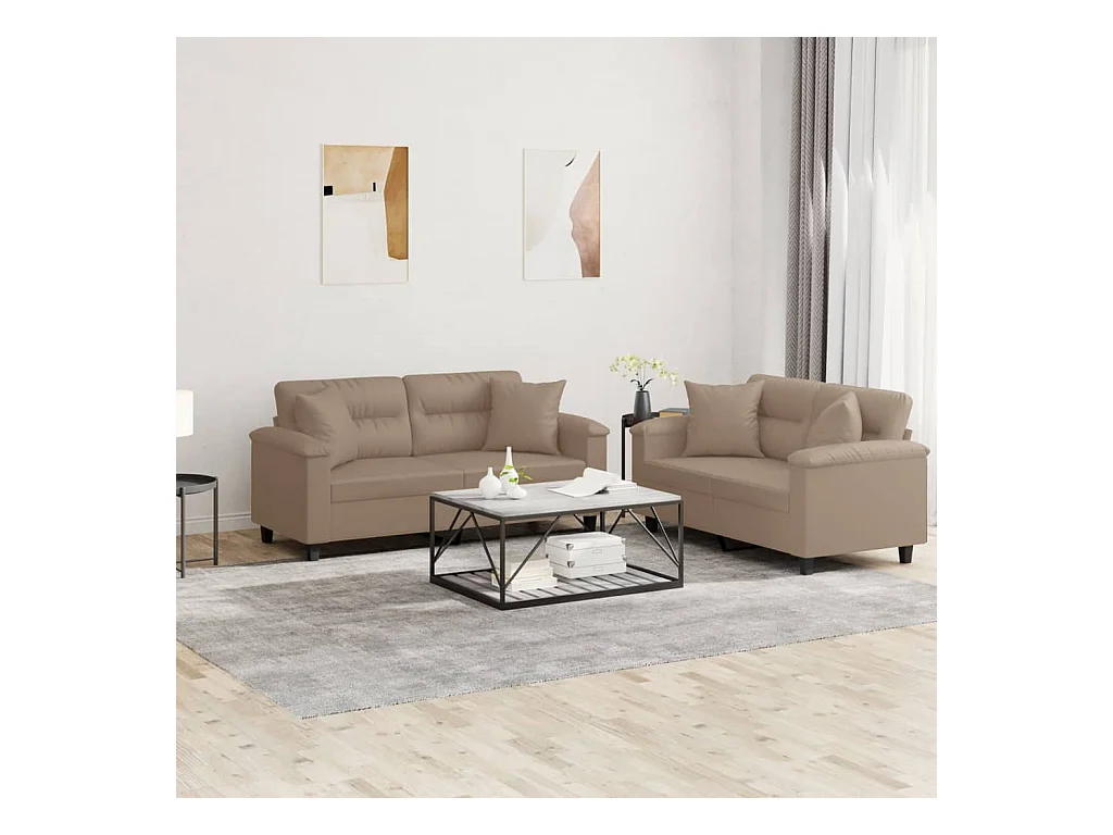 Ensemble de canapés 2 pcs avec coussins cappuccino similicuir