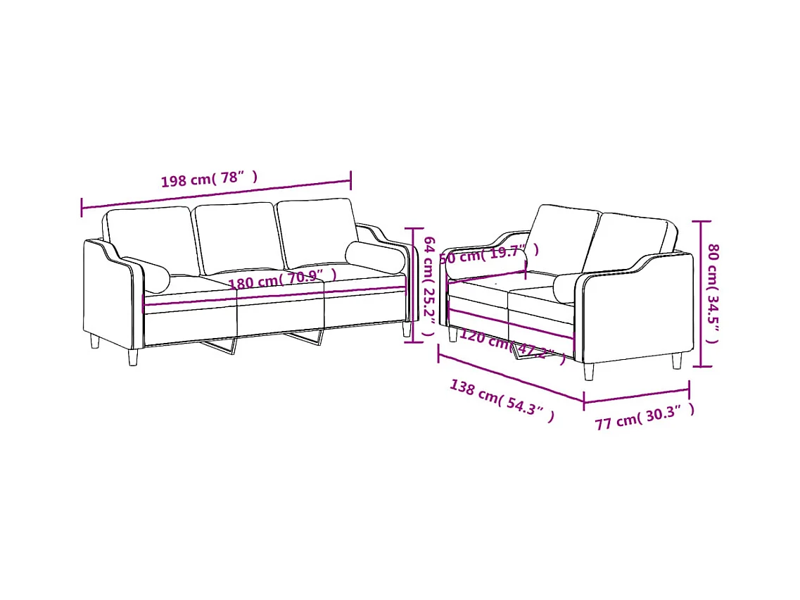Ensemble de canapés 2 pcs coussins gris foncé tissu