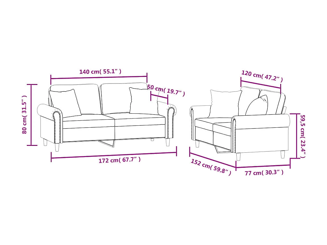 Ensemble de canapés 2 pièces avec coussins bleu velours
