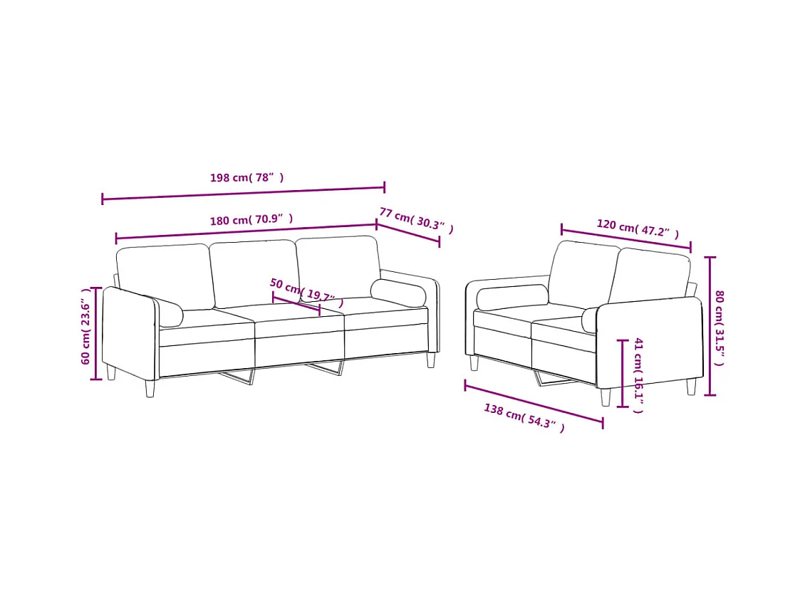 Ensemble de canapés 2 pièces avec coussins crème velours