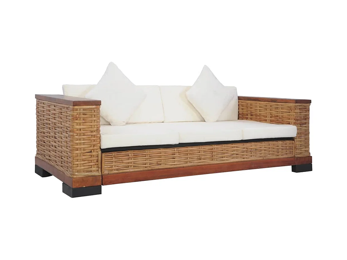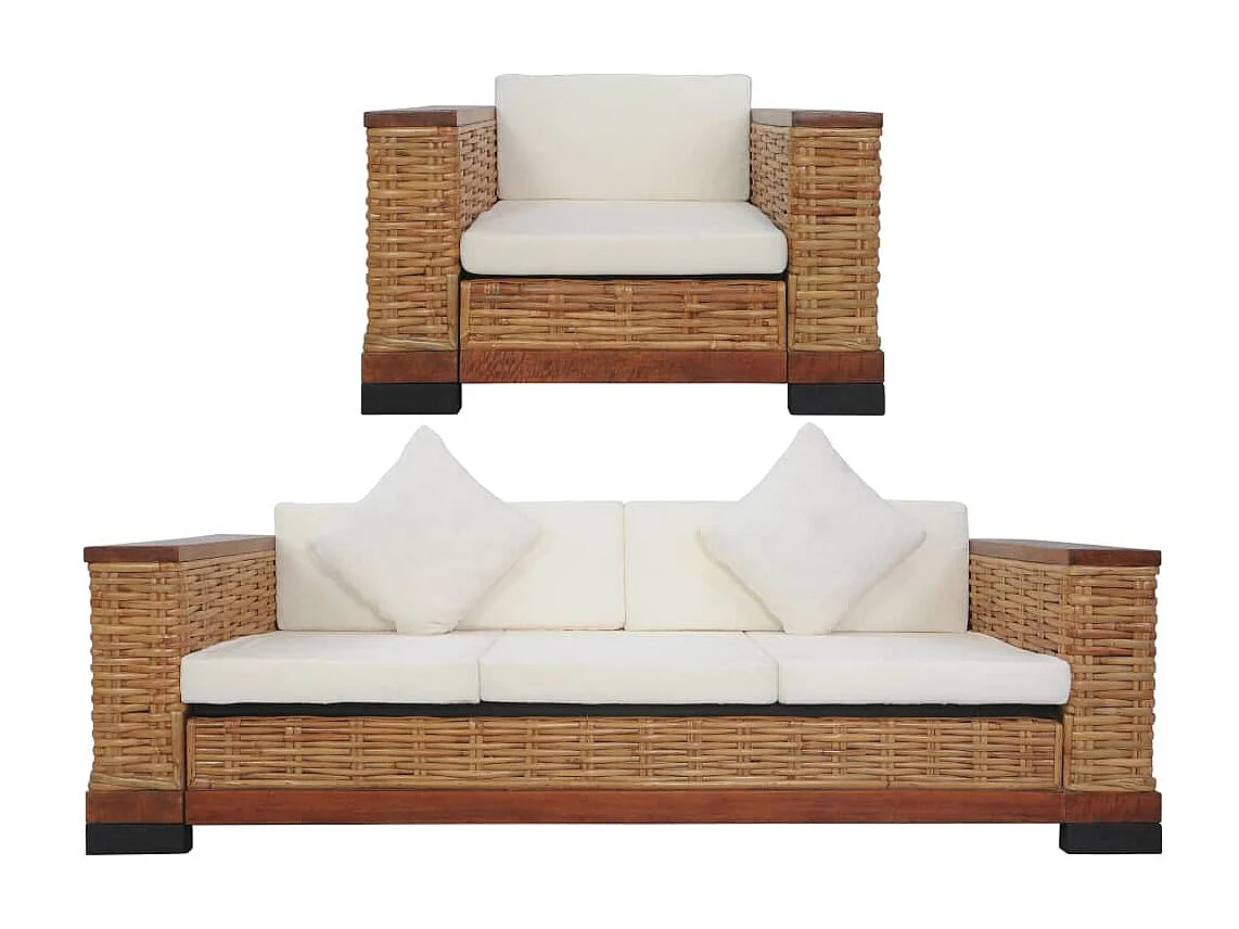 Ensemble de canapés 2 pièces avec coussins Marron Rotin naturel