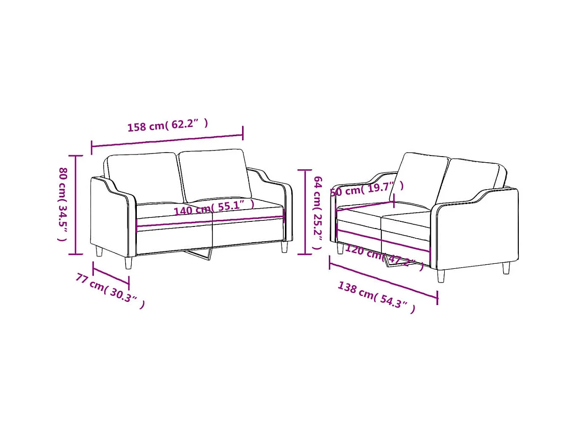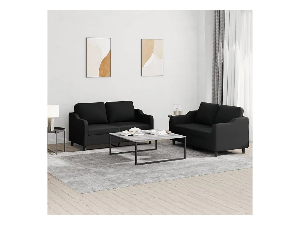 Ensemble de canapés 2 pièces avec coussins Noir Tissu