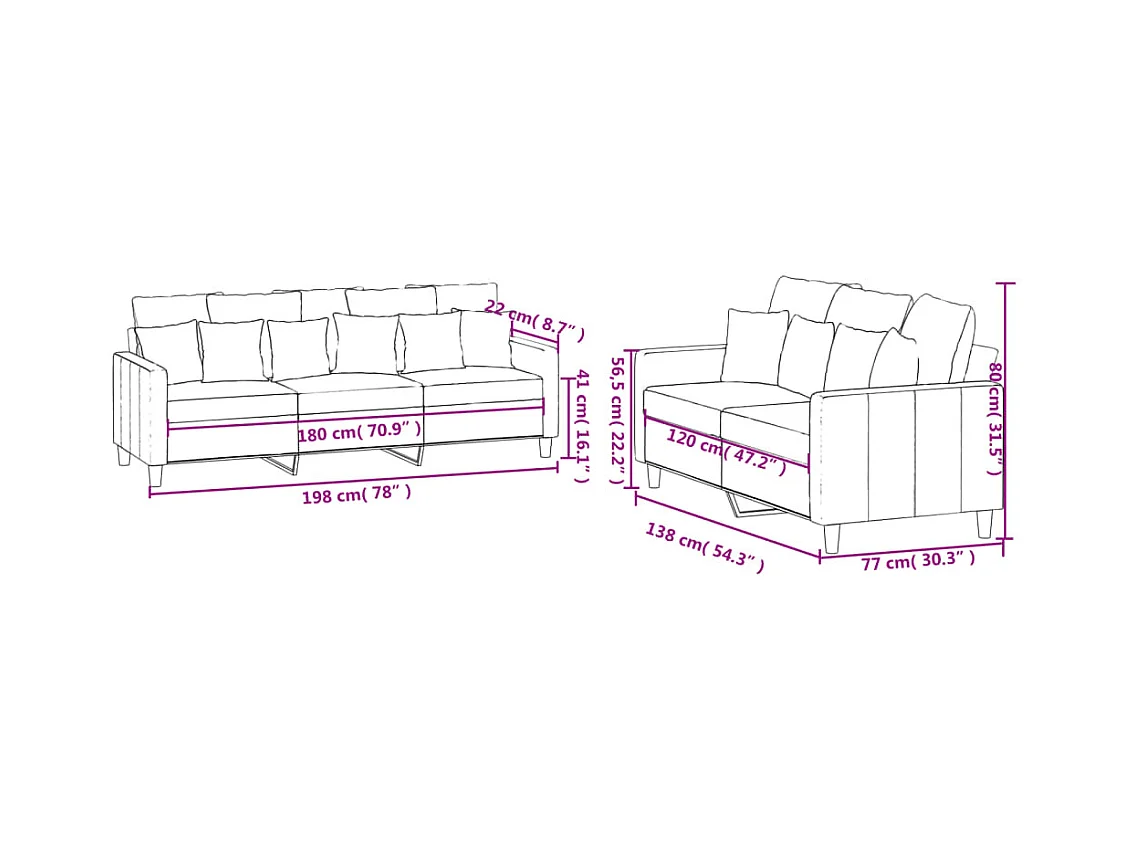 Ensemble de canapés 2 pièces avec coussins Noir Velours