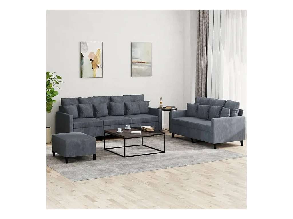 Ensemble de canapés 3 pcs avec coussins Gris foncé Velours