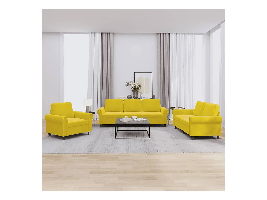 Ensemble de canapés 3 pcs avec coussins Jaune Velours