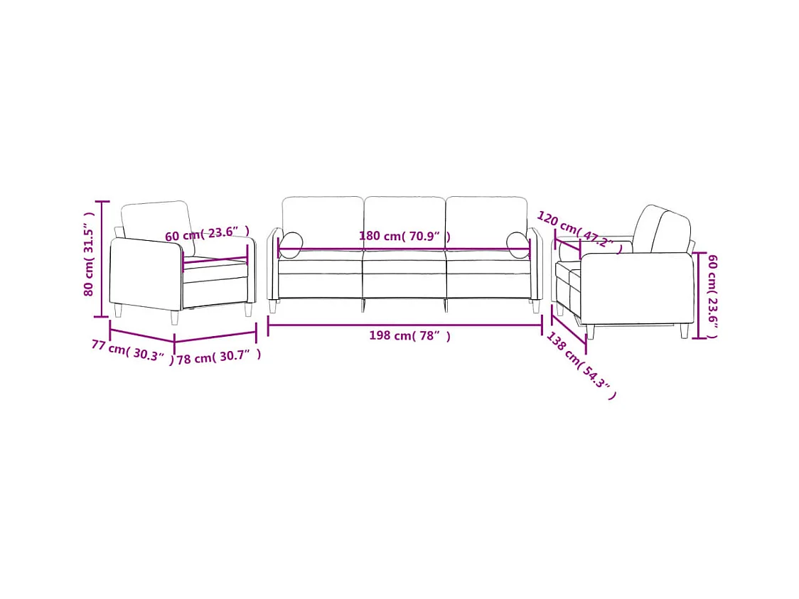 Ensemble de canapés 3 pcs avec coussins marron velours