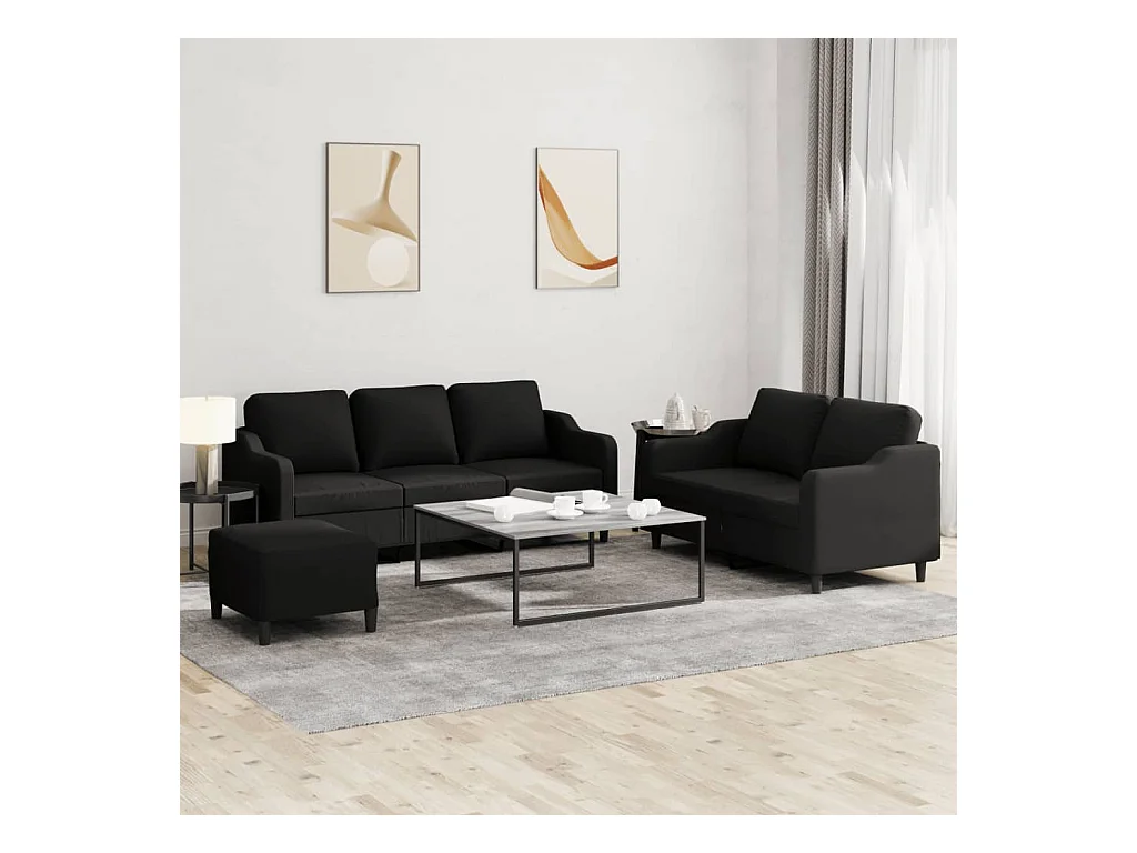 Ensemble de canapés 3 pcs avec coussins Noir Tissu