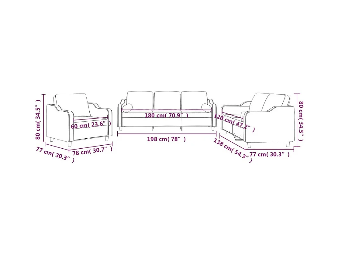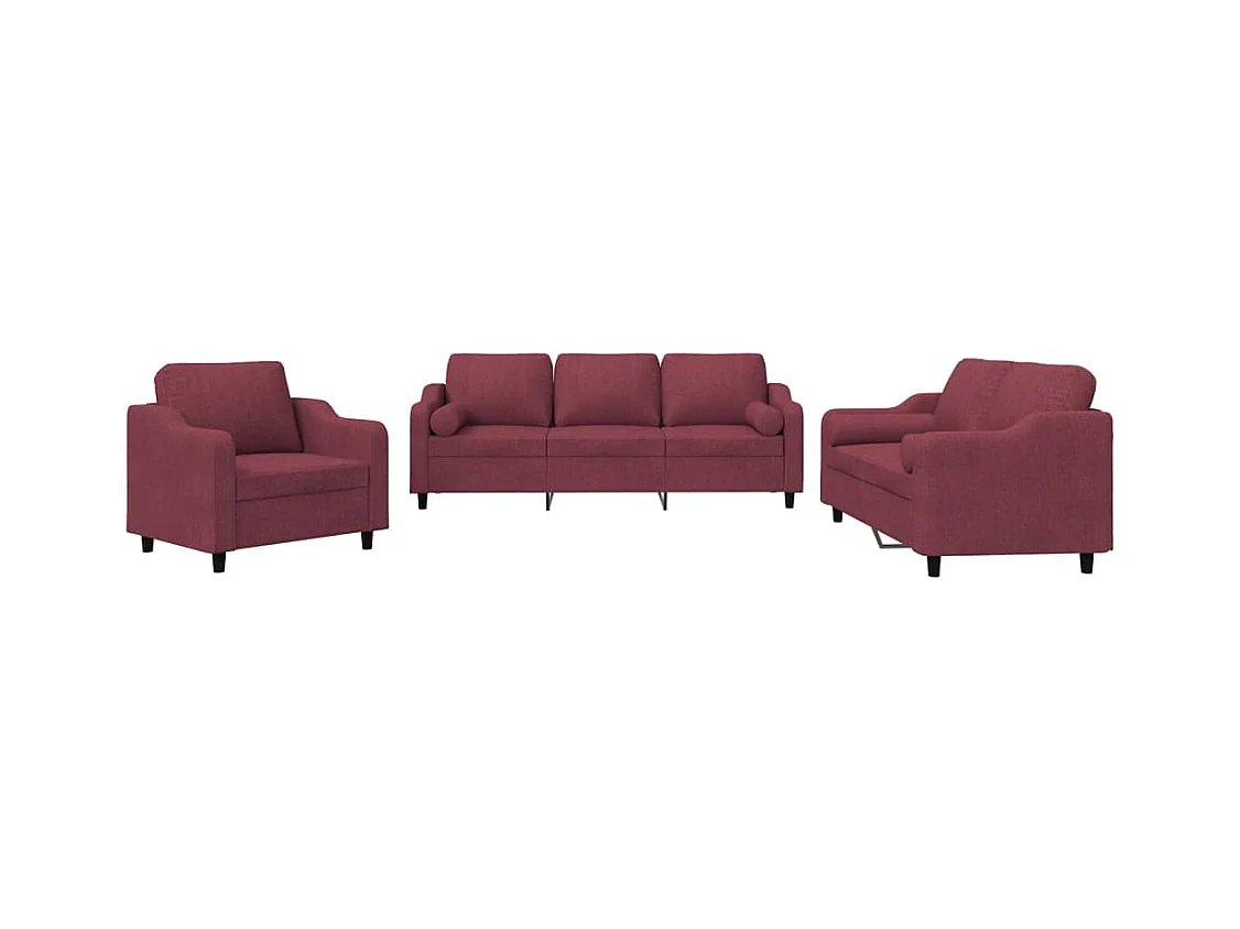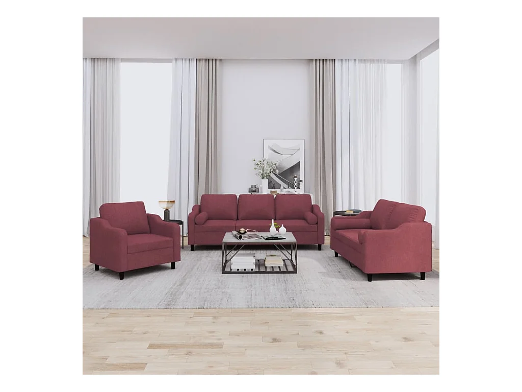 Ensemble de canapés 3 pcs avec coussins rouge bordeaux tissu