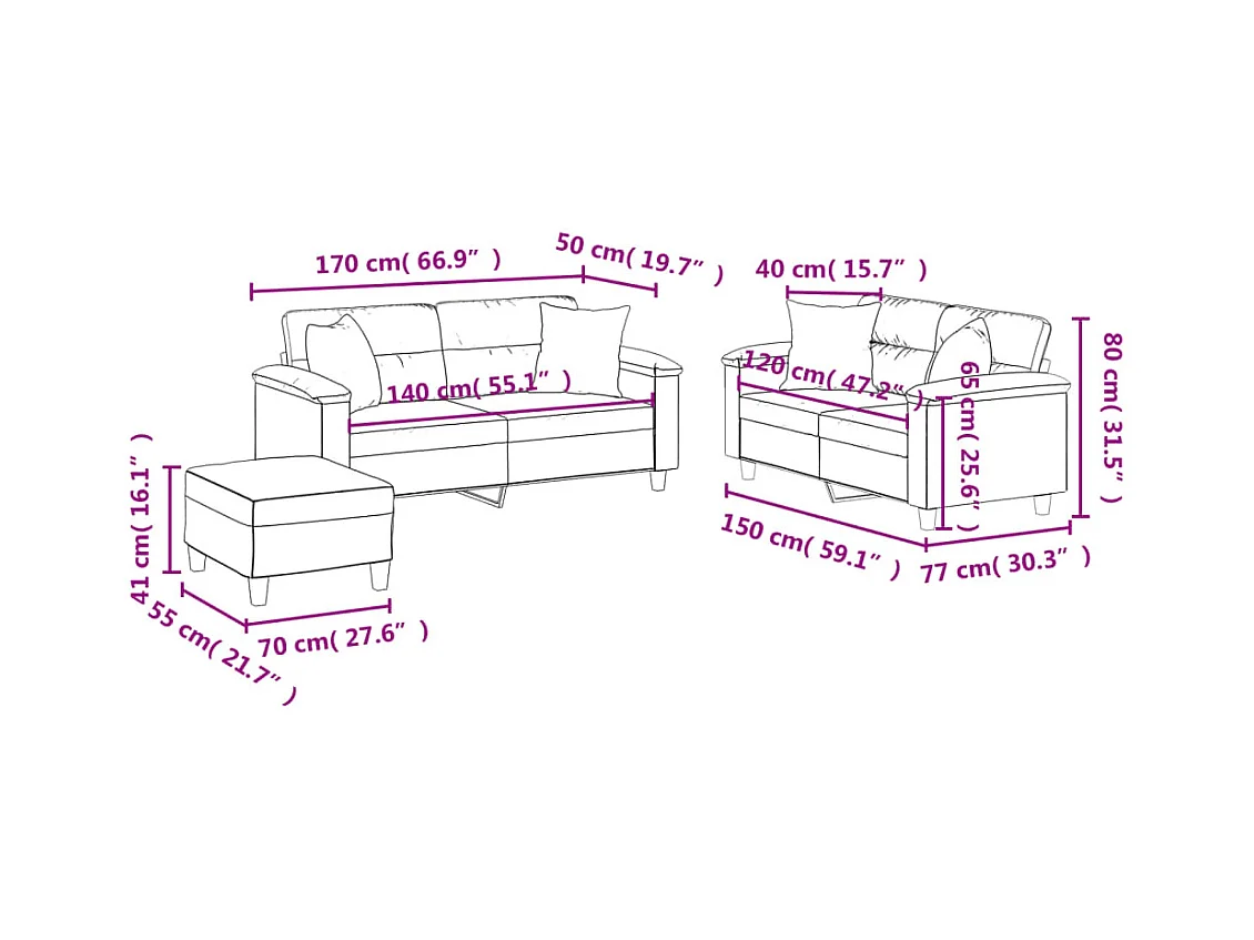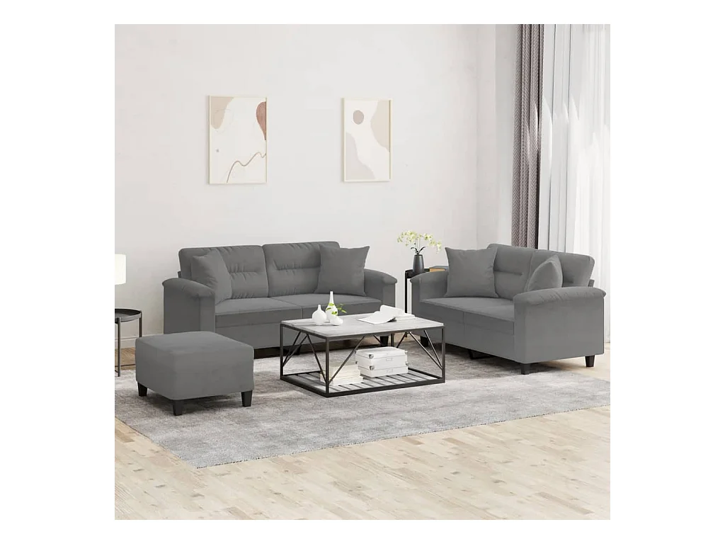 Ensemble de canapés 3 pcs coussins Gris foncé Tissu microfibre