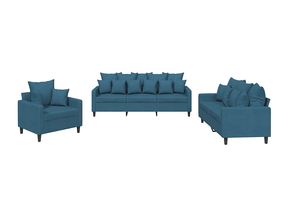 Ensemble de canapés 3 pièces avec coussins Bleu Velours